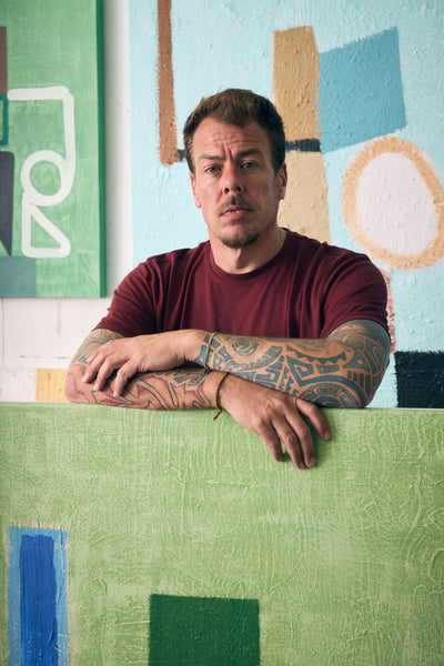 Brian Coleman received his degree in graphic design from the art institute of charlotte. “I begin my process with loosely drawing and exploring the freedom of gesture. It’s kind of like watching a bird soar, you don’t know if it will glide left, bend right, sail up or down.” Alternating between fluid and structured gestures undoubtedly reveals how Brian makes sense of the world as he moves through it. Coleman draws from a vast library of his free drawings to produce these layered creations that groove, and flow punctuated by color, line and forms that bring the rhythm of the painting to life. The images are pieces and parts of the past, present and future, in the process of becoming something else. The works become stories of their own, they come together to become another place in time. “I am never arriving at a place, and I am constantly using my pieces and parts in the process of a journey that never ends.”