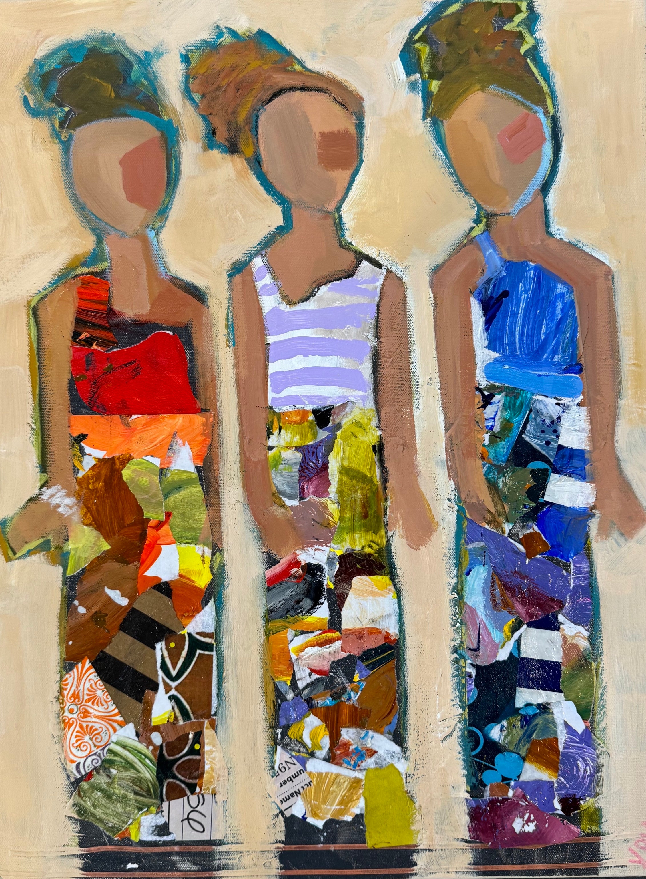 Page Morris picked up a paintbrush in third grade and never looked back. Largely self-taught, her client list reaches as far as Canada and includes syndicated columnist Kathleen Parker. Galleries representing her work include: Verve and Over the Mantle in Columbia, SC; Grand Bohemian Gallery in Charleston, SC and One Kings Lane. "My subject matter is women who are feminine, colorful, playful, strong, and beautiful. I use paper, pencil, markers, oil sticks, and paint to achieve a multi-dimensional look. I love texture because the viewers see even more when they stop to take a second look. I adhere to a rigid schedule of painting each day. Creativity only happens if I'm hard at work in my studio. I love what I do and hope my viewers can see that. It's a joyous experience to pick up a paintbrush. It's what I do and what I am."