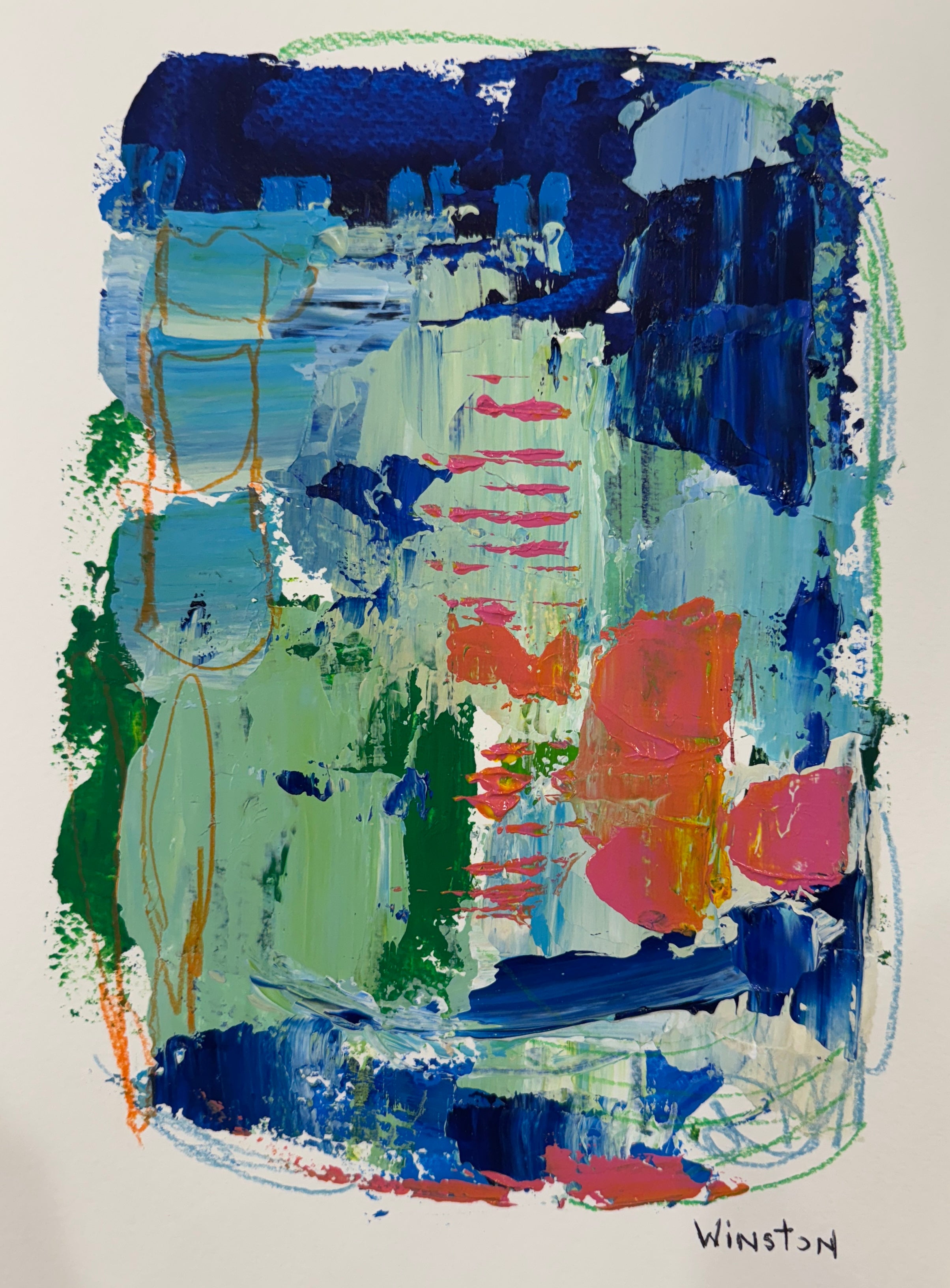 Winston Wiant is originally from Amelia Island, Florida, and full of southern charm. She brings her whimsical and witty delight to each and every painting. Having painted since childhood, she received a Bachelor of Arts degree in Studio Art at Brenau University and has been pursuing her love of art ever since. Her paintings are full of texture, using the palette knife and free brushstrokes to layer the paint, creating one energetic piece after another. She lives in Athens, GA, with her husband and two daughters and paints in her home studio. “Art to me is a form of self-expression. The way I feel that day reflects in my work. My love of bold color and texture is both distinctive and captivating.”