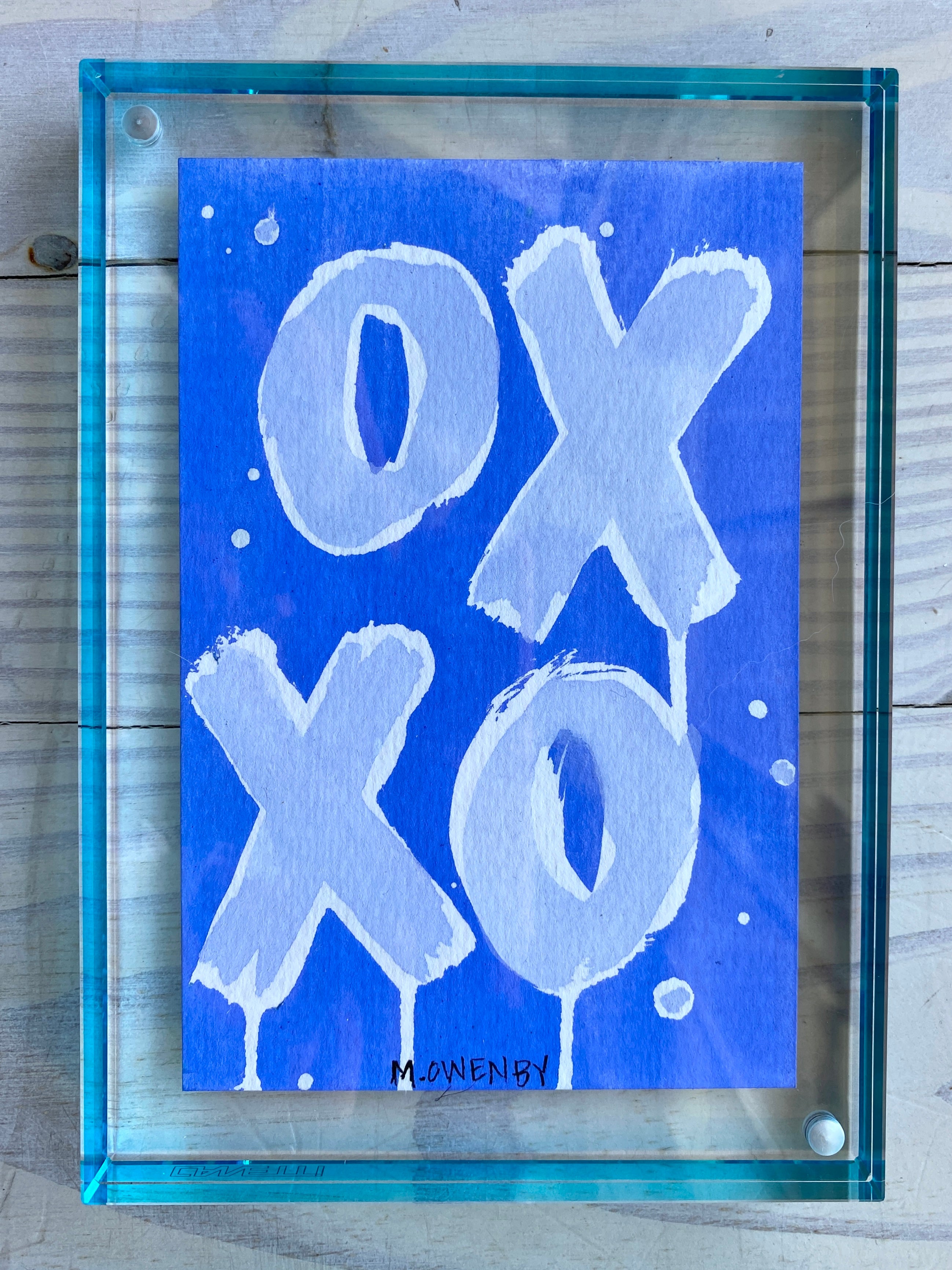 gouache on paper, in aqua edged acrylic frame