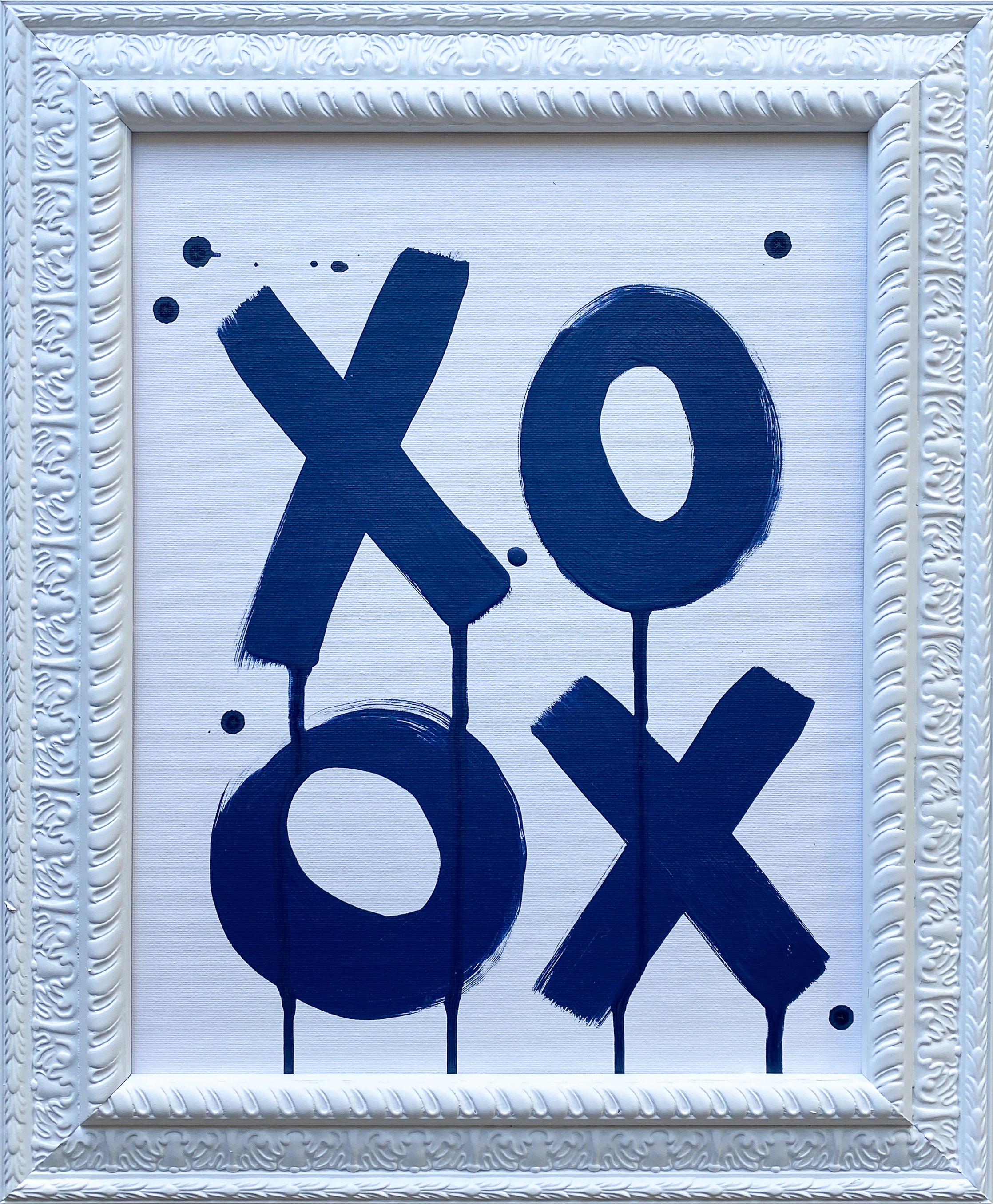 acrylic on canvas panel, in white frame