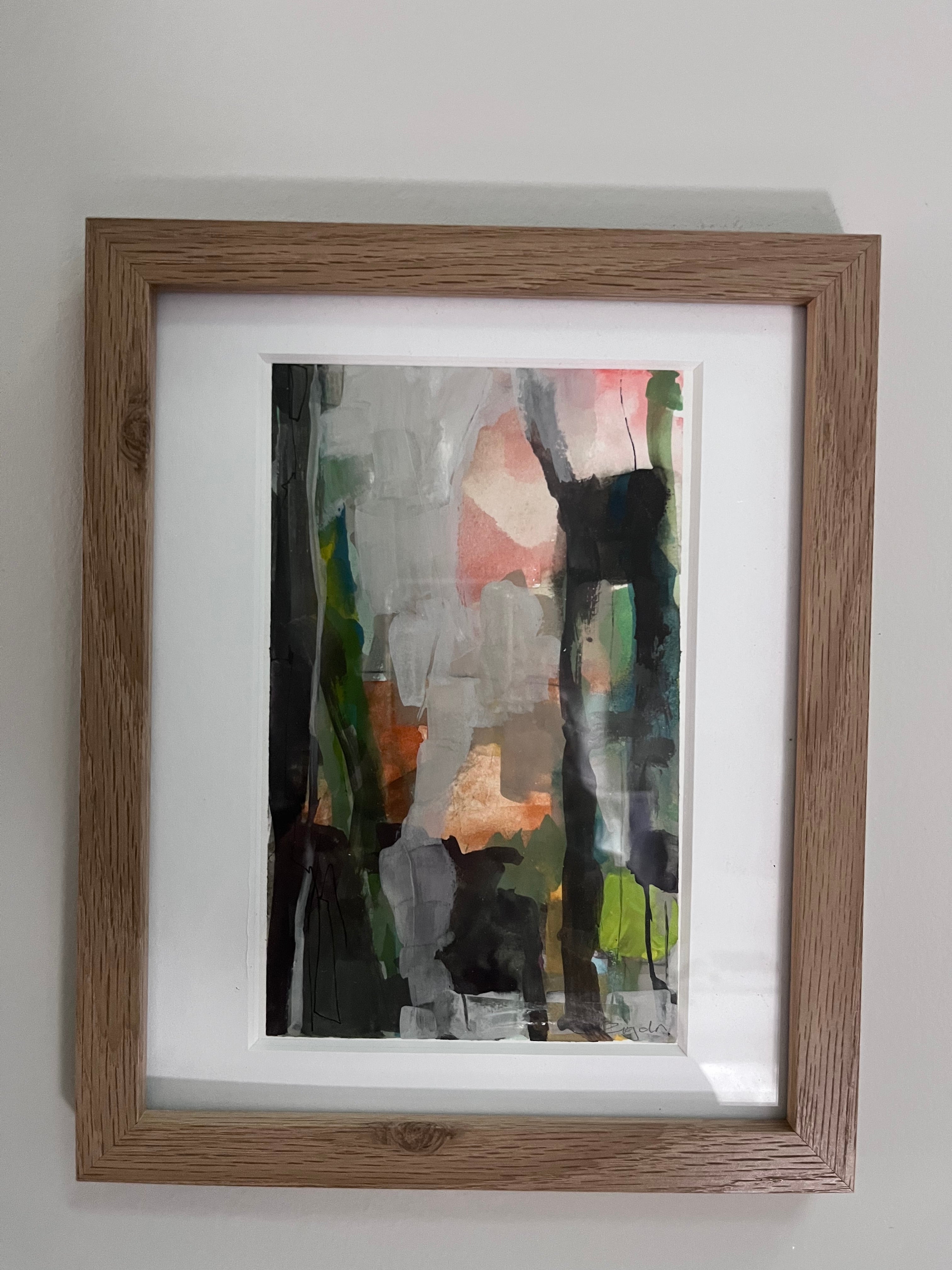 I find ultimate freedom in abstract expressionism and as such, I’m in search of the best way to convey who I am at the moment of creating. It is not to say it is a free-for-all; there is still structure within. I implement the same principles that realist painters employ with the absence of representation: composition, hierarchy, variety, juxtaposition are vital to a successful painting. But I do not limit myself to one medium or the other. I work in oil, acrylics and gouache and depending on what I’m exploring at the time I will choose one or more to express it. I also explore through a combination of paint and collage. It is through all of these various methods and mediums that I am able to share my fullest expression of self and my authenticity. My paintings ultimately are self portraits that are created from both past experiences and also future hopes and dreams. It is my goal to invoke a feeling for the viewer. When it does I have succeede