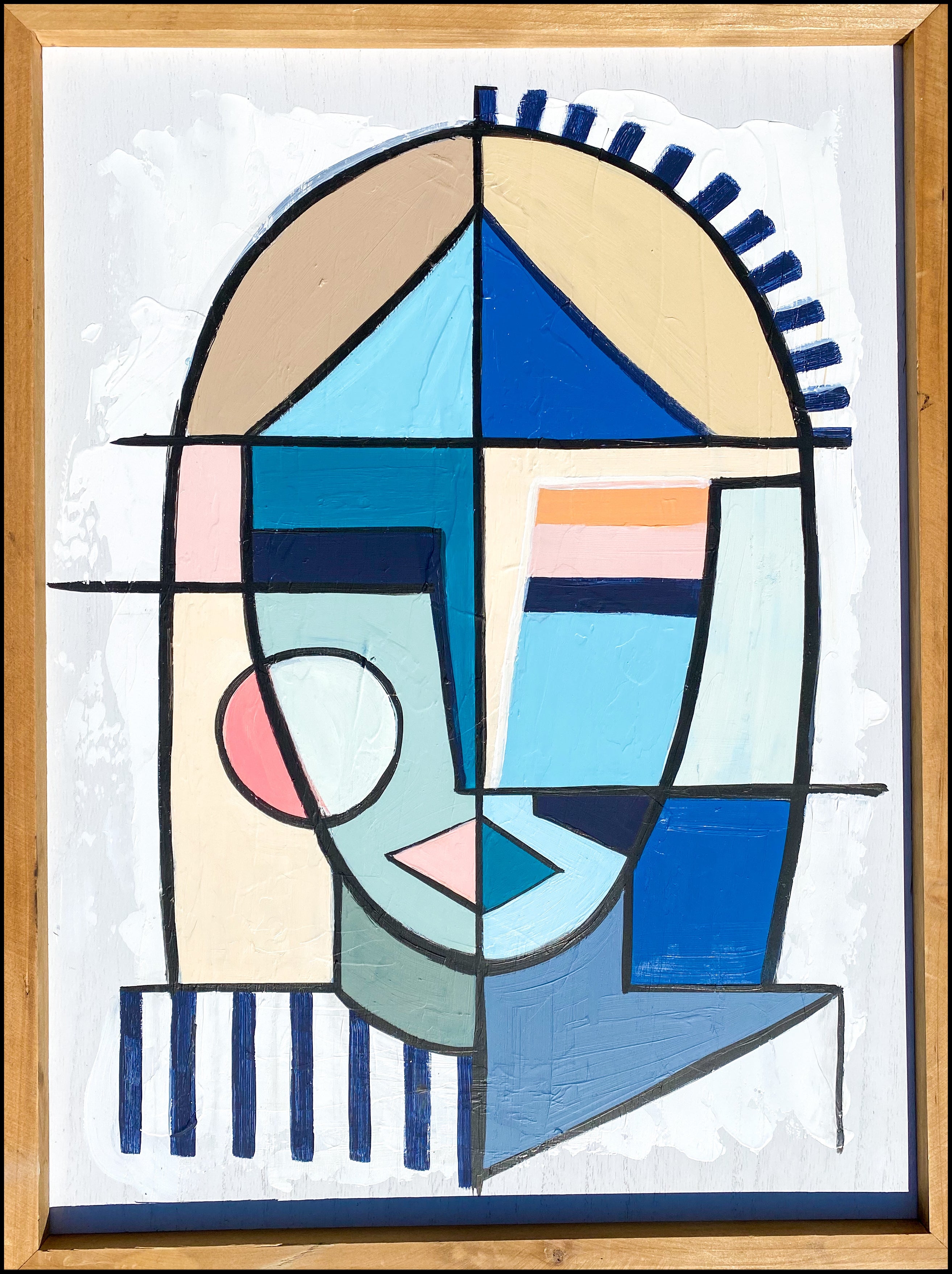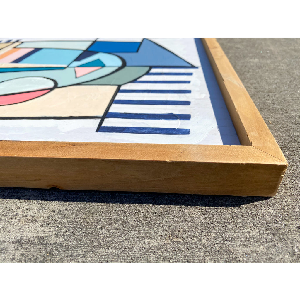 acrylic and ink on wood board, framed