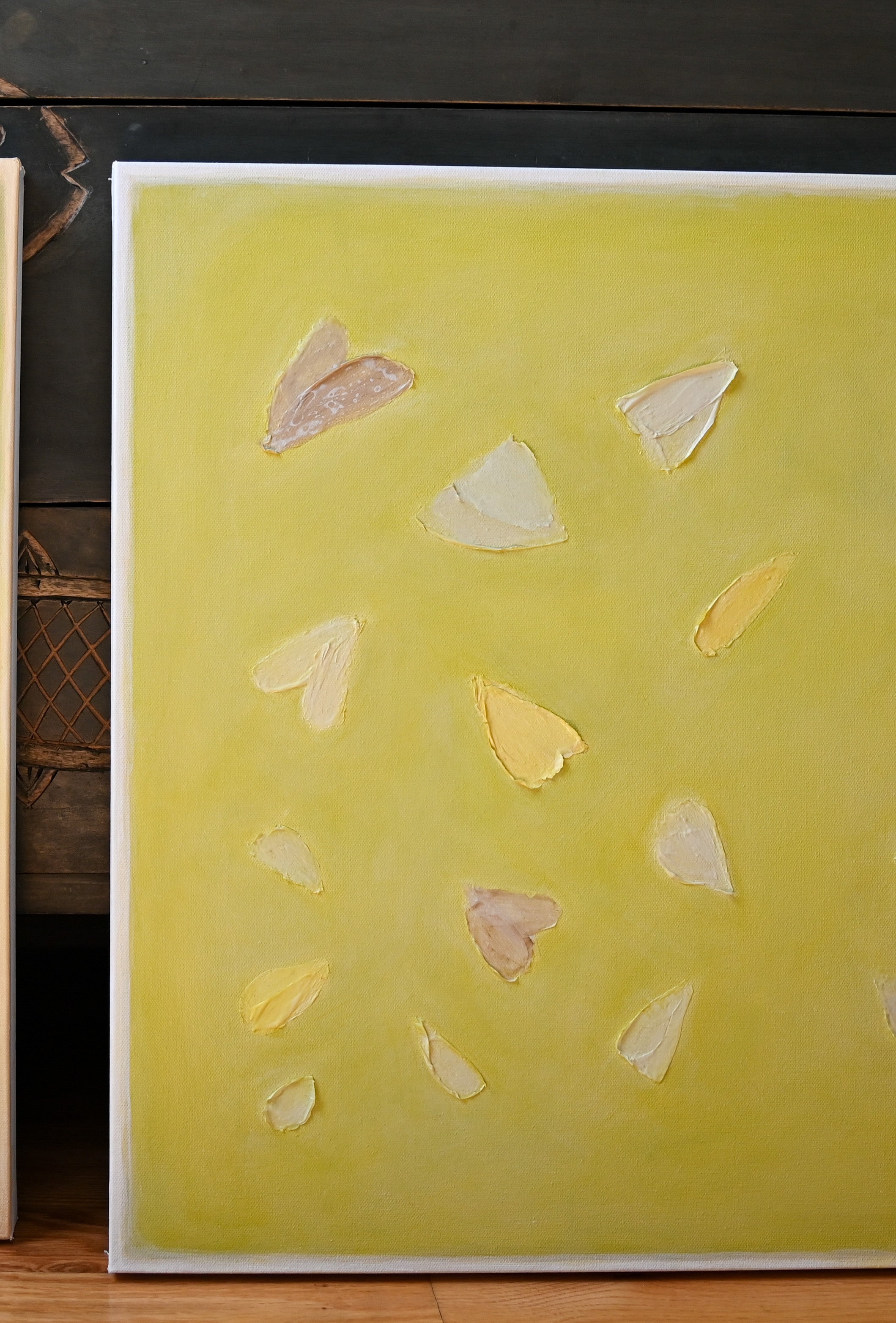 If Diana had a personal motto it would be “everything can be a treasure hunt if you try hard enough.” Growing up in Baton Rouge, Louisiana, Diana was fully trained in the art of the hunt by her mother who would drop all plans at the glimmer of an “Estate Sale Today” sign. Fortunately, this past time led to the ultimate find of a library of art and painting books which sent her in to a rabbit hole of learning about theories, lines, composition, and color that she hasn’t looked back from since. After years of self-study and practice, Diana launched her first collection to the public in fall of 2020. Her first series entitled “The Butterfly Collection” is built upon layers of color, glazers and washes carefully balanced to find the calm in the chaos. Diana names each piece after her favorite inspirational influences from authors to beaches to everyday people in her life that constantly bring her back to awe and wonder. Diana resides in Mount Pleasant, South Carolina with her husband Gabe, and her three boys Dixon, Charles, and Henry. If you are in the area and see a girl with paint chips on her hand digging for shells in the beach or through a stack of books in front of the library, please say hello!