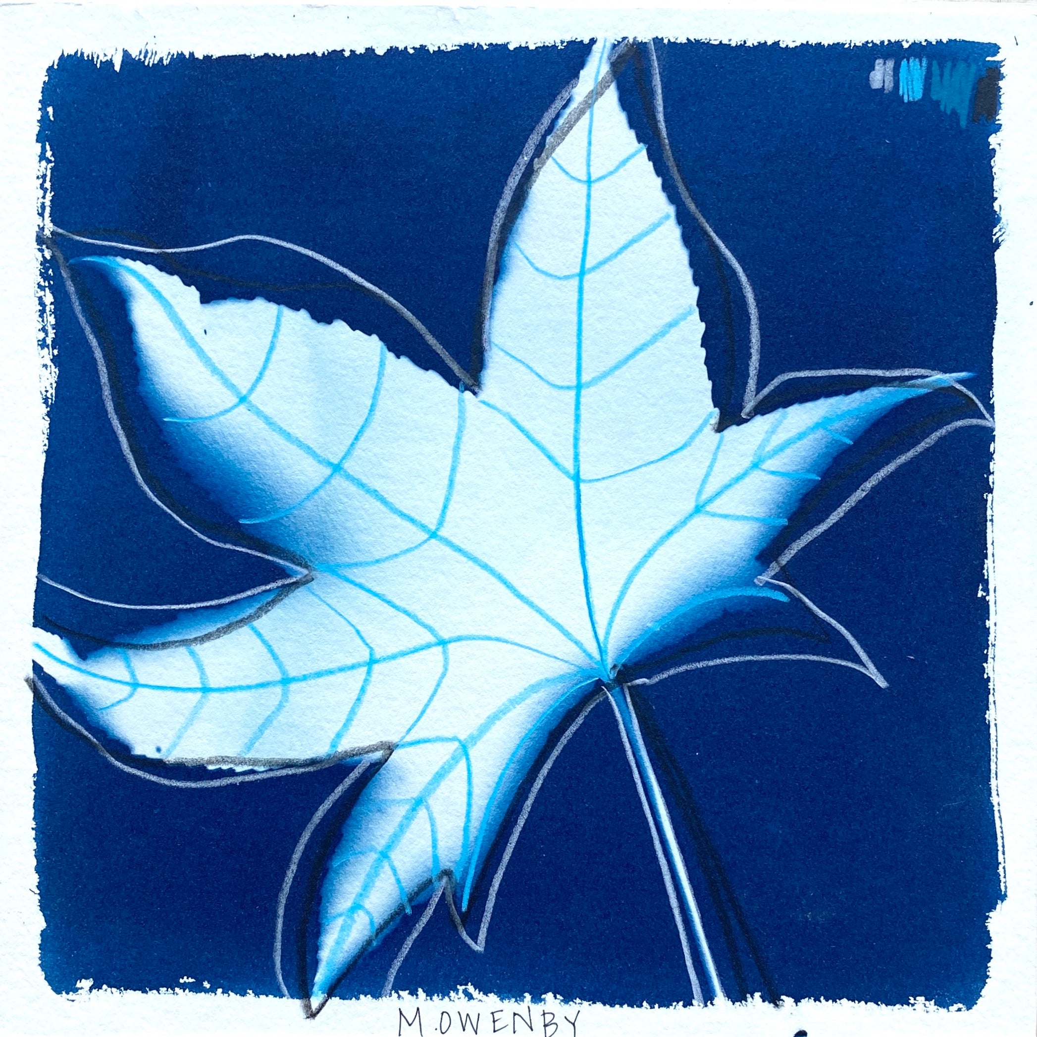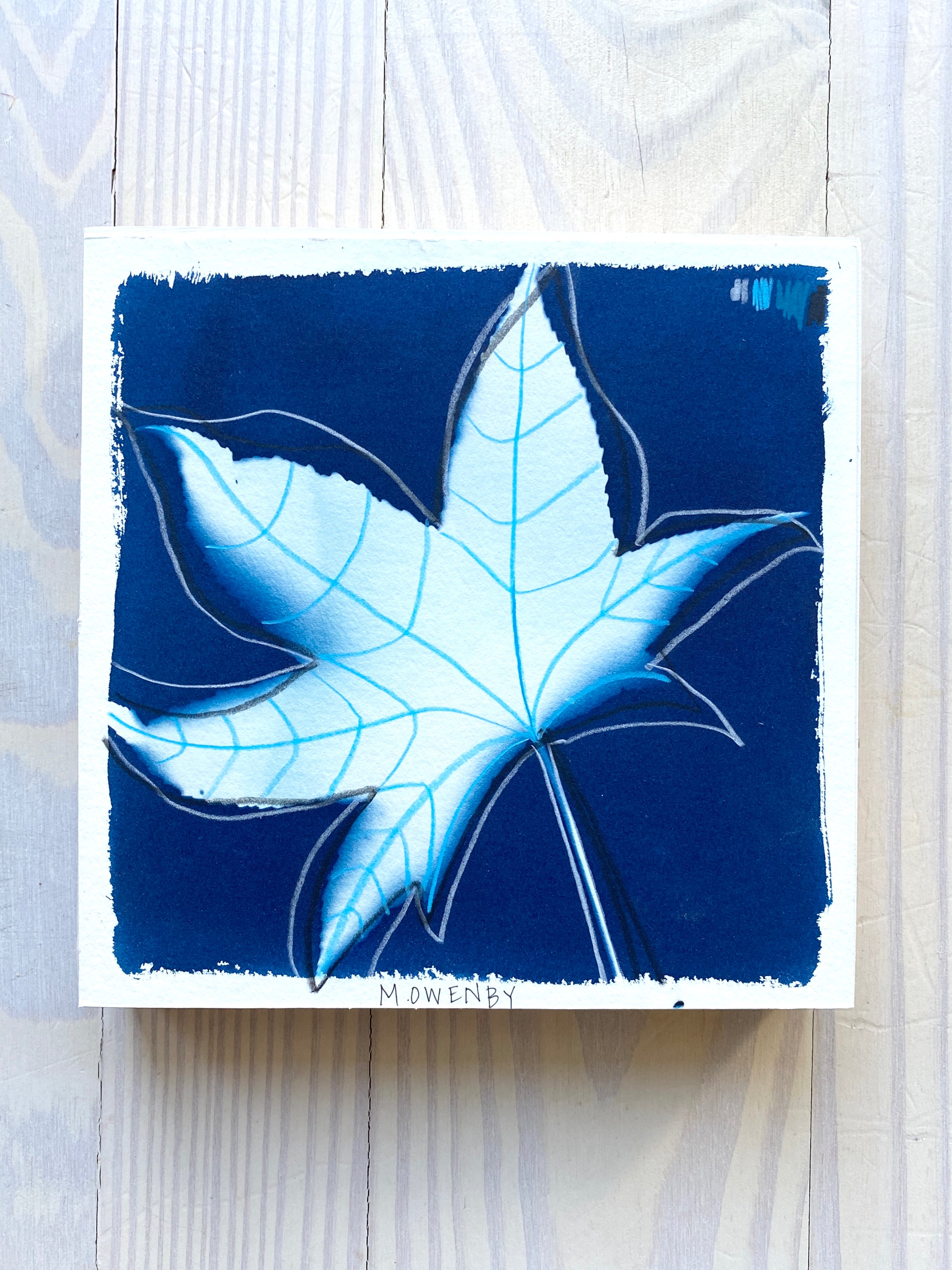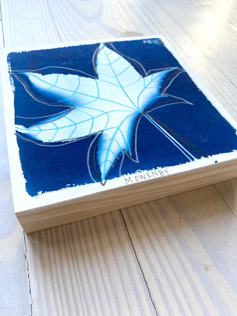 cyanotype on paper, mounted on cradled wood panel