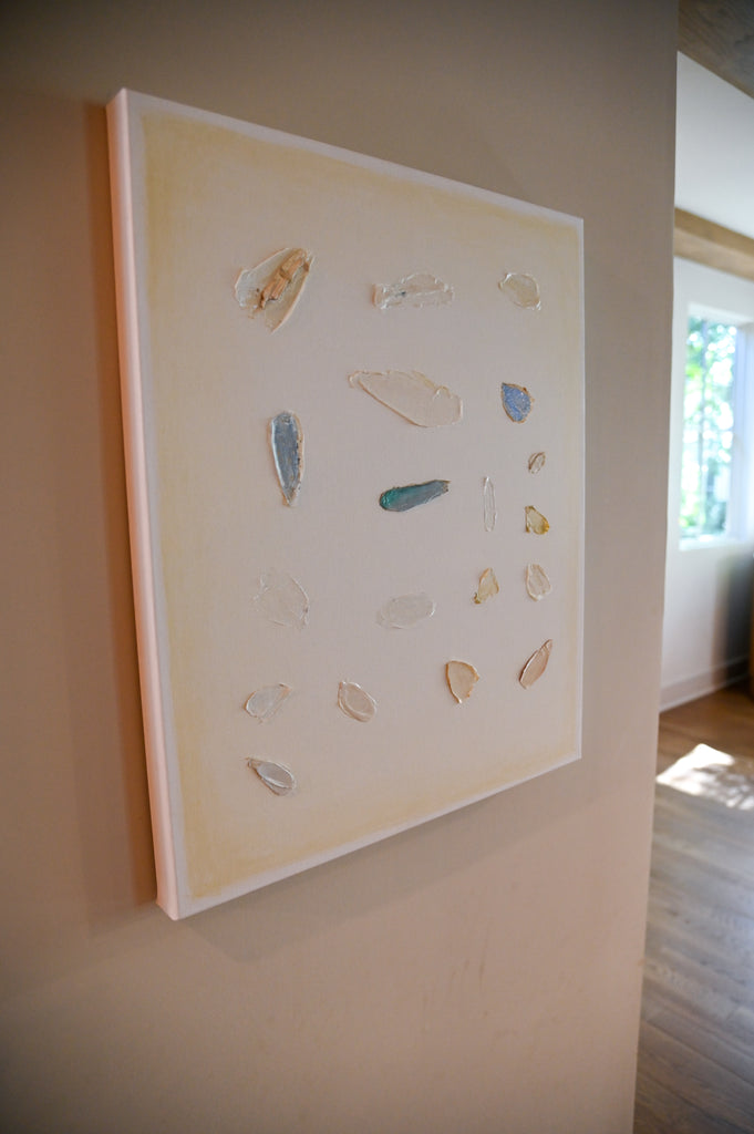 If Diana had a personal motto it would be “everything can be a treasure hunt if you try hard enough.” Growing up in Baton Rouge, Louisiana, Diana was fully trained in the art of the hunt by her mother who would drop all plans at the glimmer of an “Estate Sale Today” sign. Fortunately, this past time led to the ultimate find of a library of art and painting books which sent her in to a rabbit hole of learning about theories, lines, composition, and color that she hasn’t looked back from since. After years of self-study and practice, Diana launched her first collection to the public in fall of 2020. Her first series entitled “The Butterfly Collection” is built upon layers of color, glazers and washes carefully balanced to find the calm in the chaos. Diana names each piece after her favorite inspirational influences from authors to beaches to everyday people in her life that constantly bring her back to awe and wonder. Diana resides in Mount Pleasant, South Carolina with her husband Gabe, and her three boys Dixon, Charles, and Henry. If you are in the area and see a girl with paint chips on her hand digging for shells in the beach or through a stack of books in front of the library, please say hello!