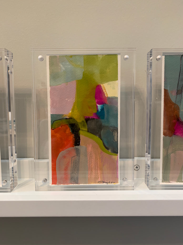 I find ultimate freedom in abstract expressionism and as such, I’m in search of the best way to convey who I am at the moment of creating. It is not to say it is a free-for-all; there is still structure within. I implement the same principles that realist painters employ with the absence of representation: composition, hierarchy, variety, juxtaposition are vital to a successful painting. But I do not limit myself to one medium or the other. I work in oil, acrylics and gouache and depending on what I’m exploring at the time I will choose one or more to express it. I also explore through a combination of paint and collage. It is through all of these various methods and mediums that I am able to share my fullest expression of self and my authenticity. My paintings ultimately are self portraits that are created from both past experiences and also future hopes and dreams. It is my goal to invoke a feeling for the viewer. When it does I have succeede