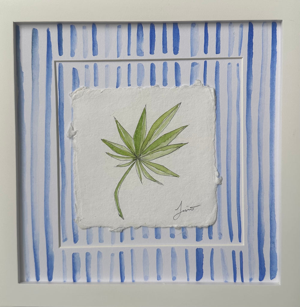 watercolor on paper, in white wood frame