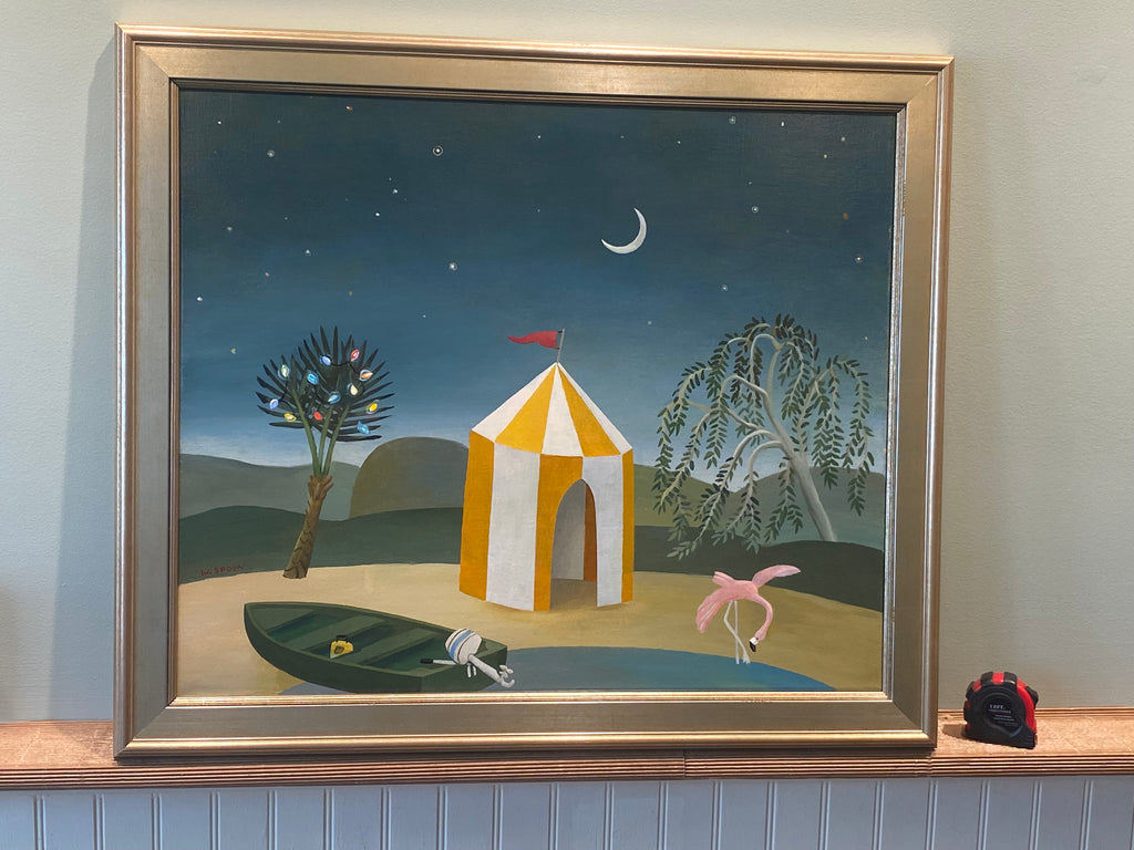 Wilfred Spoon is a painter working in the SC Lowcountry. Born in Charlotte, NC in 1960 he earned his MFA at Parsons School of design in New York in 1987. His chosen media is oil painting. His paintings explore traditional landscapes, still lifes, as well as interiors. His still lifes and interiors search the mystery of the everyday while maintaining an emphasis on structure. His landscapes are a celebration of nature and fantasy. Sometimes dark but always optimistic. He strives to express what the artist knows rather than what he sees, and so the facts of physical reality are largely sifted through the mind and personality of the painter. His paintings demonstrate his love for the naive as well as his art education. This combination infuses his work with a surprising clarity in an unexpected world.