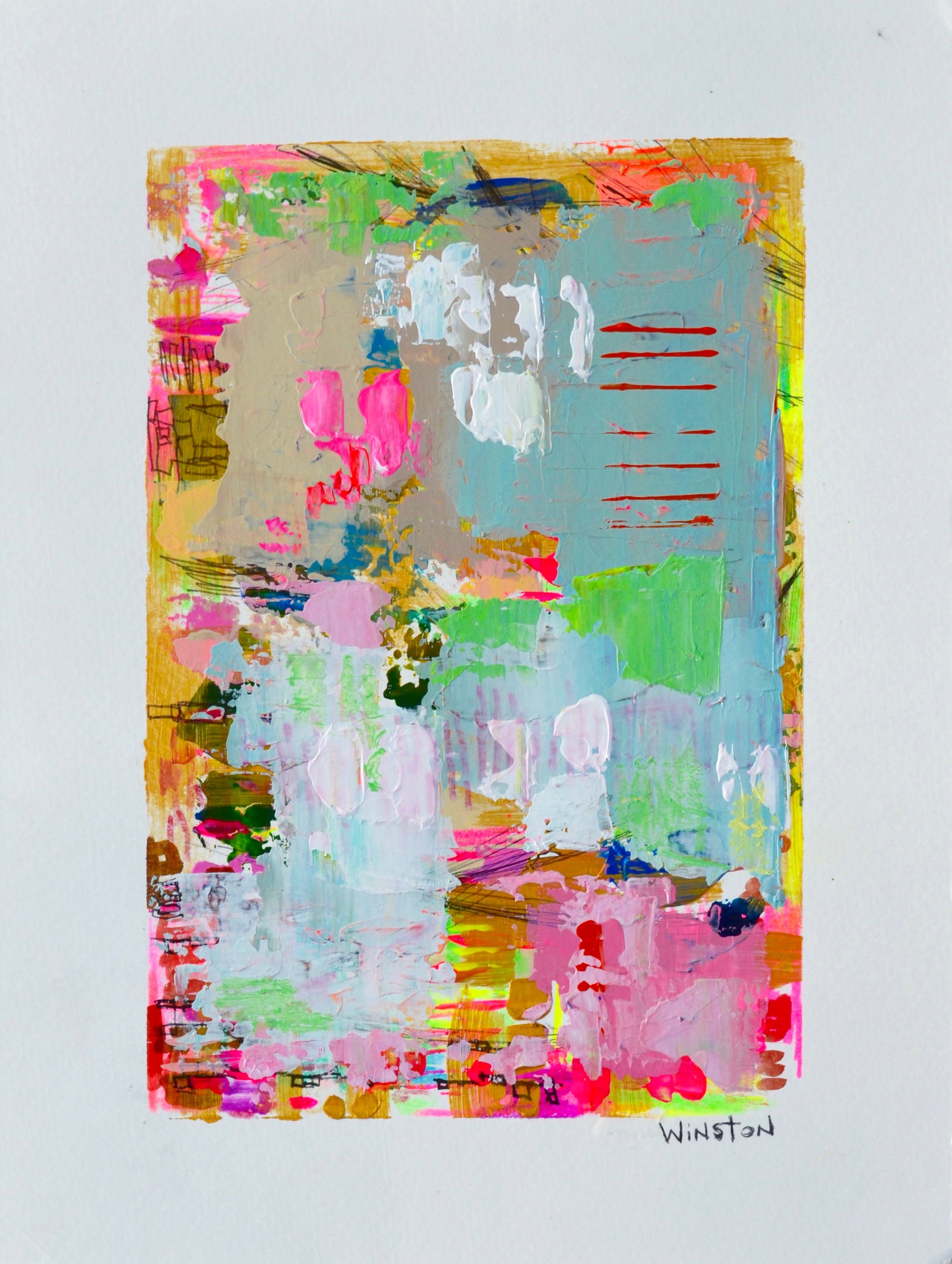 Winston Wiant is originally from Amelia Island, Florida, and full of southern charm. She brings her whimsical and witty delight to each and every painting. Having painted since childhood, she received a Bachelor of Arts degree in Studio Art at Brenau University and has been pursuing her love of art ever since. Her paintings are full of texture, using the palette knife and free brushstrokes to layer the paint, creating one energetic piece after another. She lives in Athens, GA, with her husband and two daughters and paints in her home studio. “Art to me is a form of self-expression. The way I feel that day reflects in my work. My love of bold color and texture is both distinctive and captivating.”