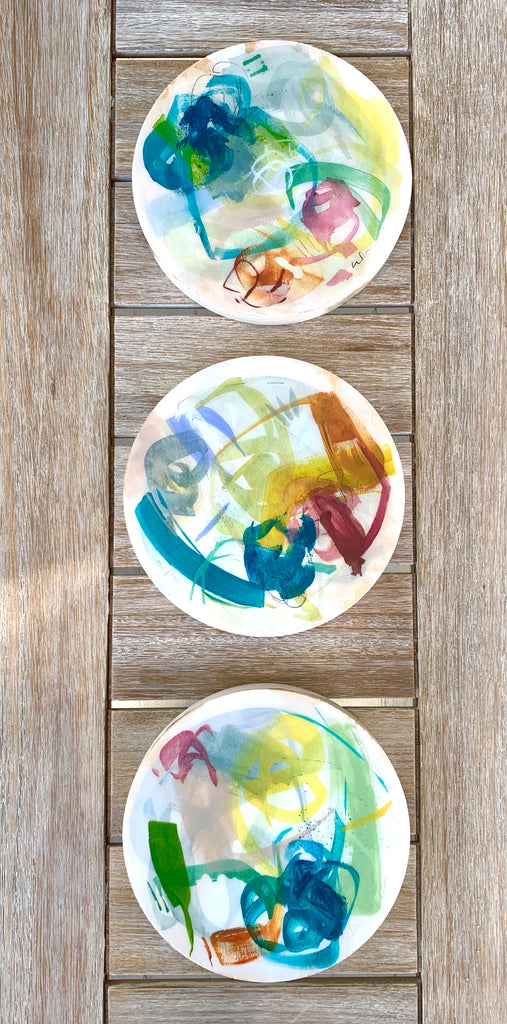 It all began with a passion for pencil drawing and pen and ink. From there, Emily Brown has grown into a celebrated artist using her love for texture and layering to create beautiful pieces of art. She combines bold strokes of color with the starkness of innocent lines and untouched spaces to tell a unique story through her work. After earning a BFA at Mississippi State University, Emily started her career as a graphic designer in Memphis, Tennessee, while also launching her own line of handmade paper products. In 2010, Emily moved to Charleston and turned her full attention to painting. Her art is ever changing and evolving. She often creates several pieces at a time, shifting them from her easel as inspiration strikes until their transformation is complete and they are ready for you to enjoy. http://emilybrownart.com/home.html