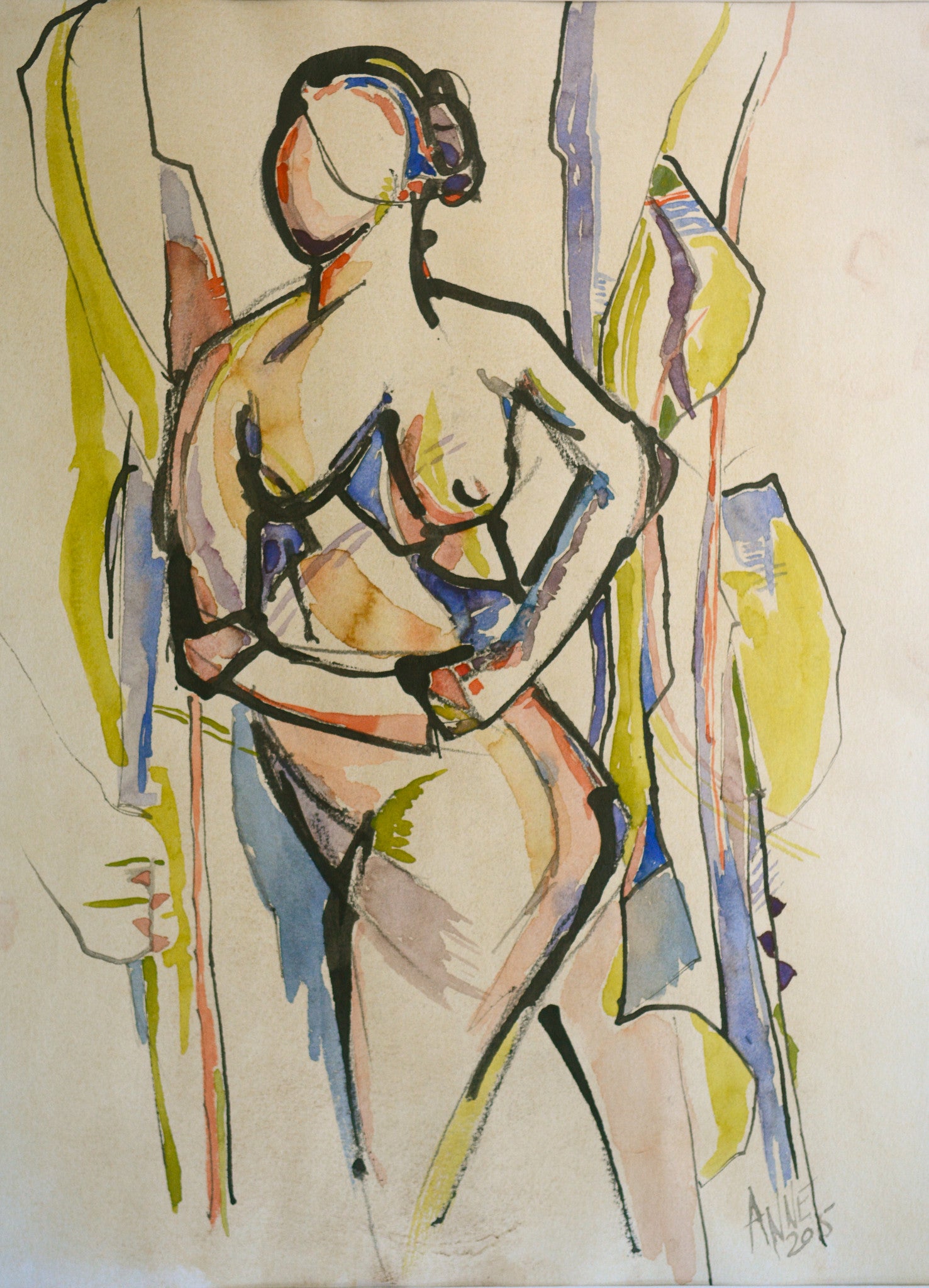 india ink, watercolor, pastel on watercolor paper