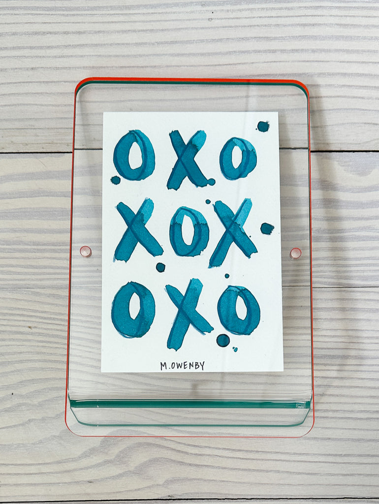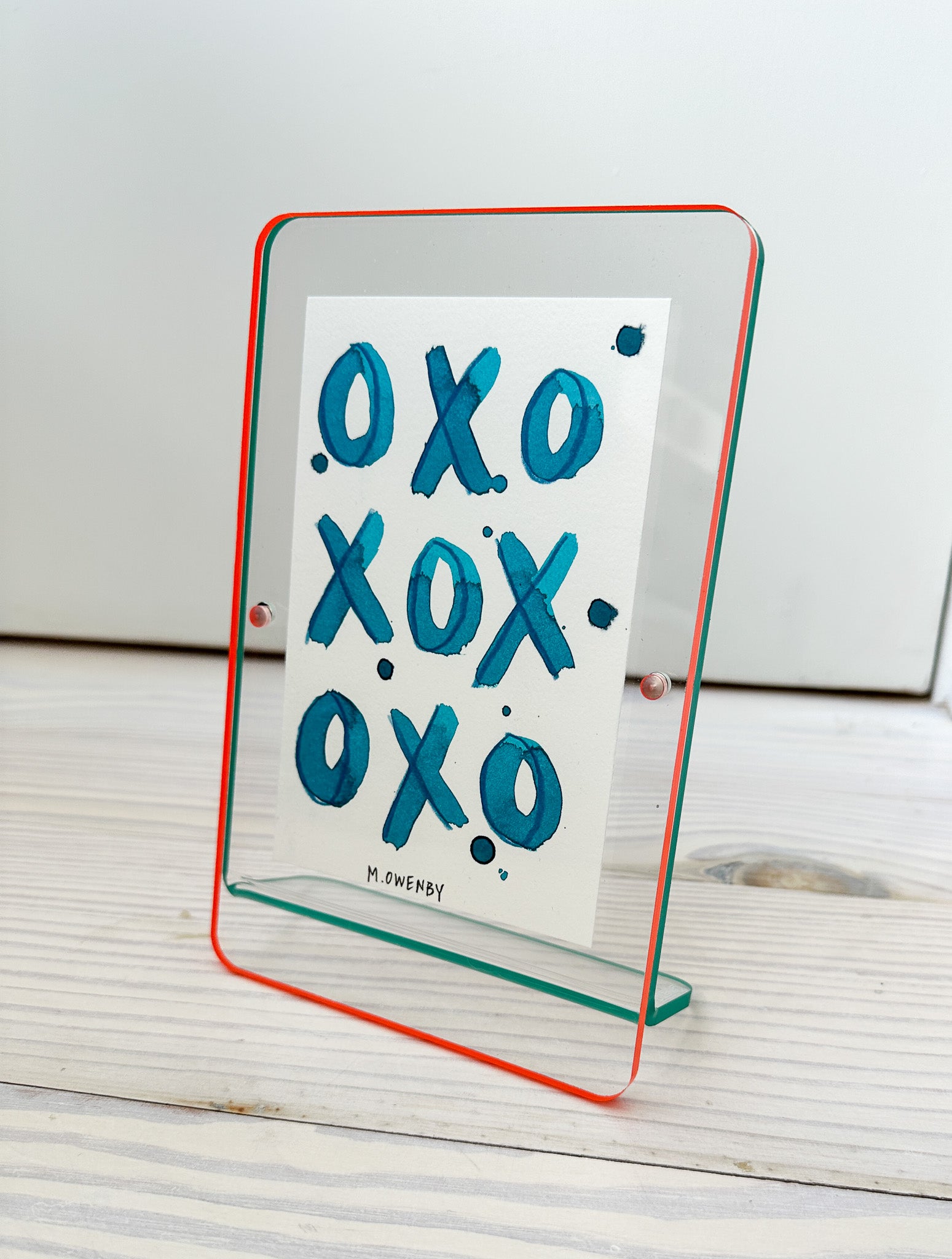 watercolor on paper, in acrylic magnetic frame with colored edge