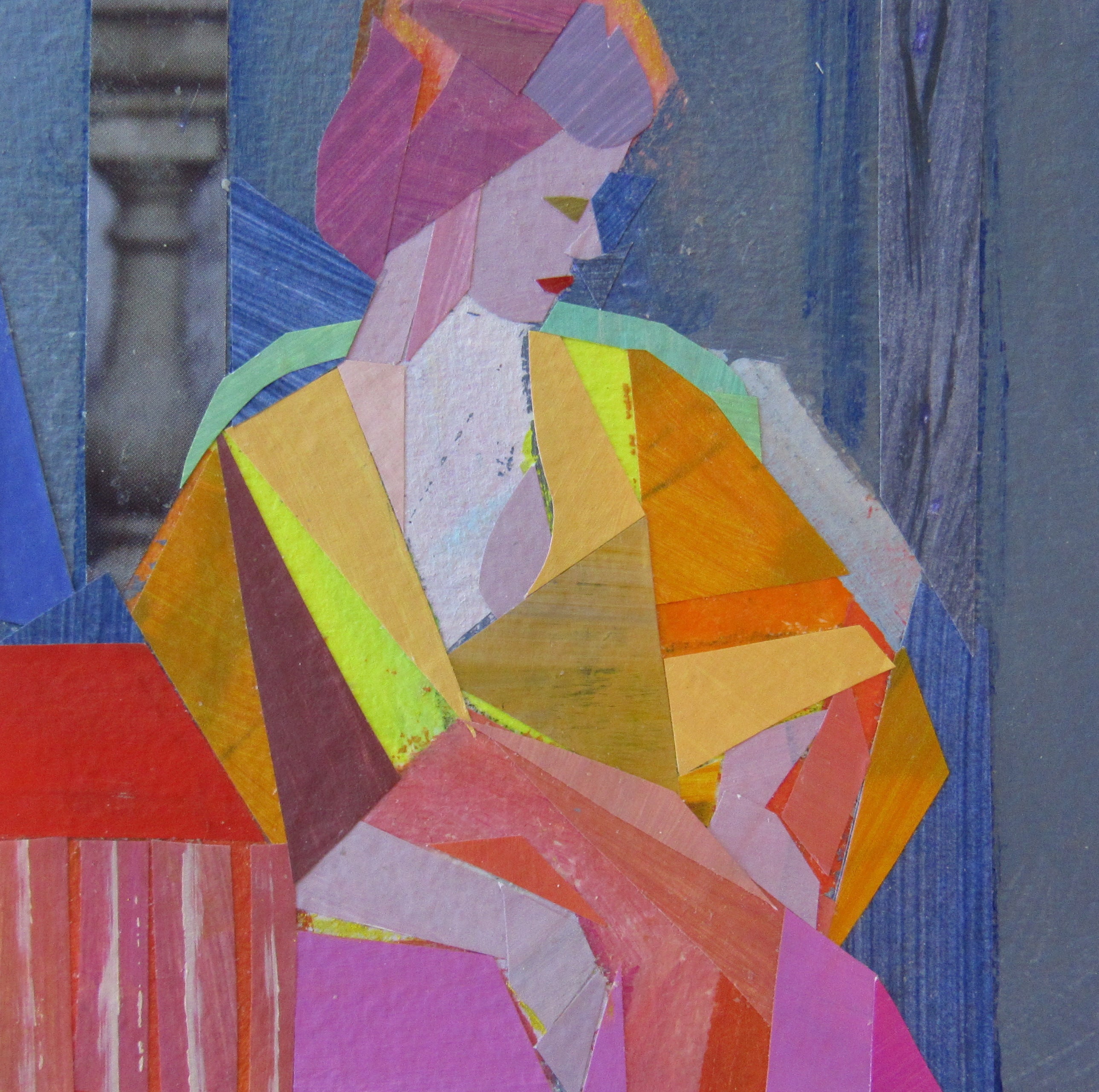 collage on paper, framed in white frame