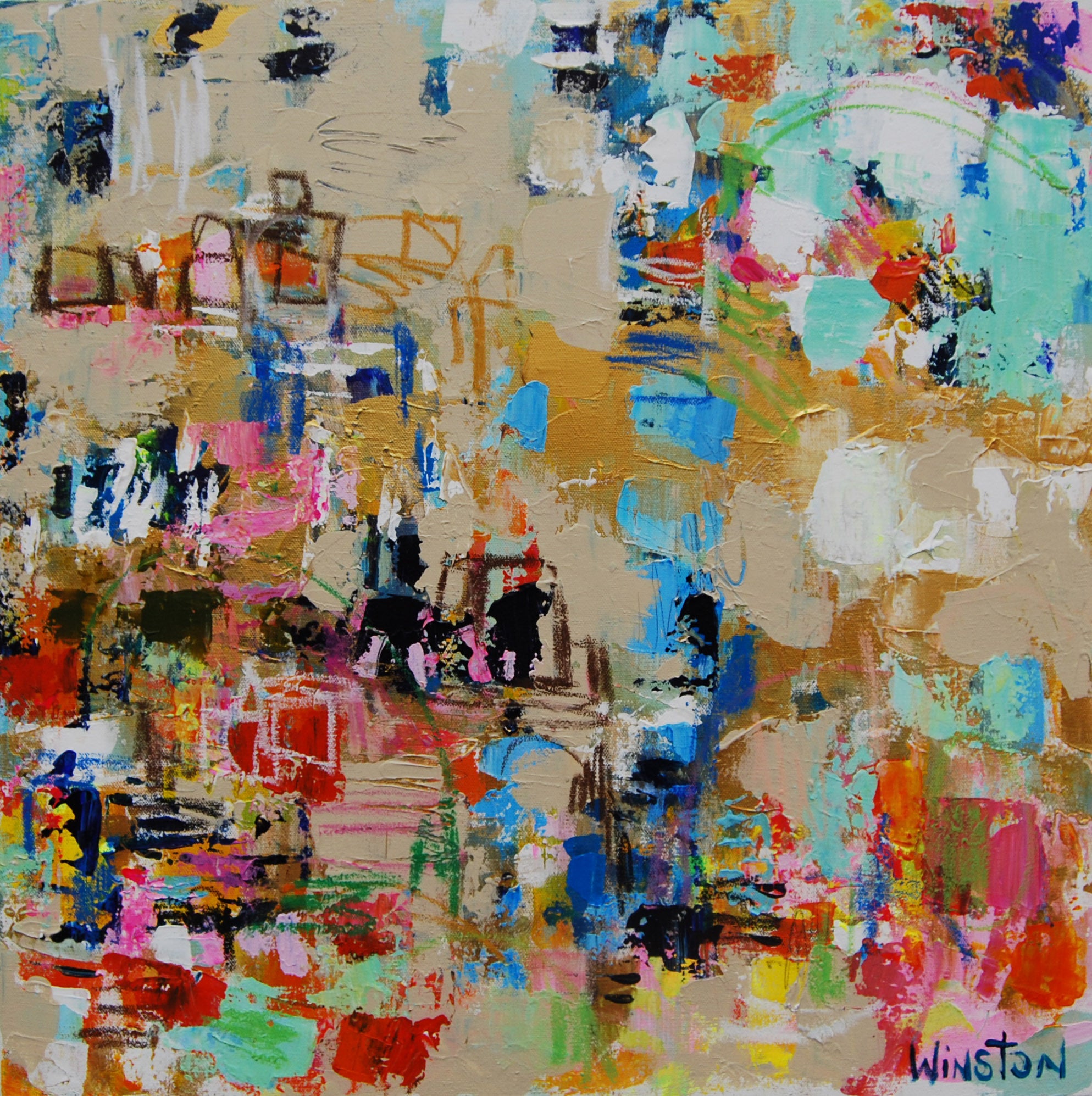 Winston Wiant is originally from Amelia Island, Florida, and full of southern charm. She brings her whimsical and witty delight to each and every painting. Having painted since childhood, she received a Bachelor of Arts degree in Studio Art at Brenau University and has been pursuing her love of art ever since. Her paintings are full of texture, using the palette knife and free brushstrokes to layer the paint, creating one energetic piece after another. She lives in Athens, GA, with her husband and two daughters and paints in her home studio. “Art to me is a form of self-expression. The way I feel that day reflects in my work. My love of bold color and texture is both distinctive and captivating.”