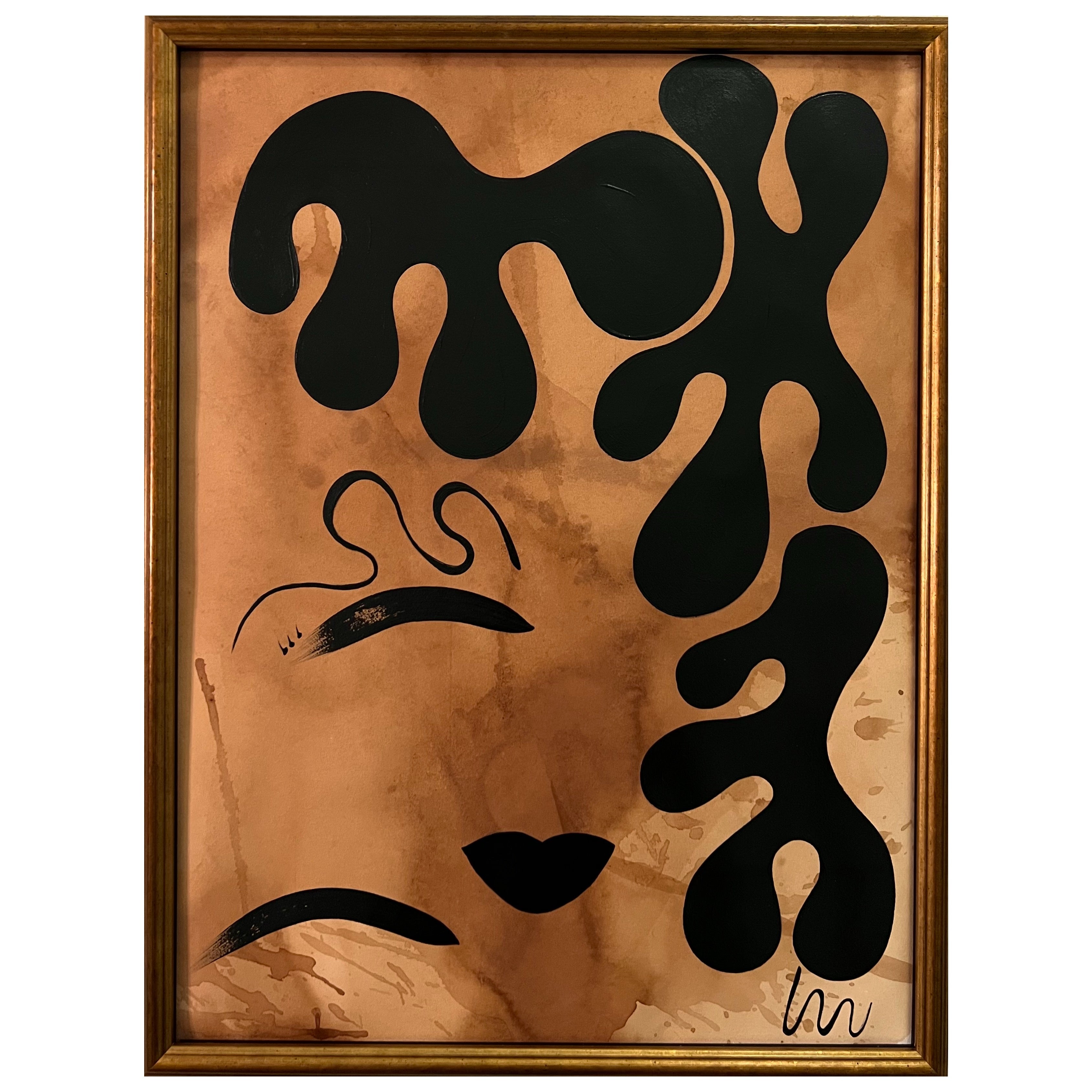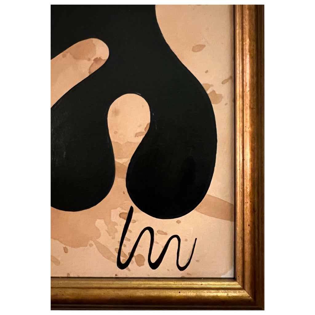 acrylic on tea-stained cold press paper, custom framed in antique gold frame, with UltraVue Anti-Reflection PlexiGlass