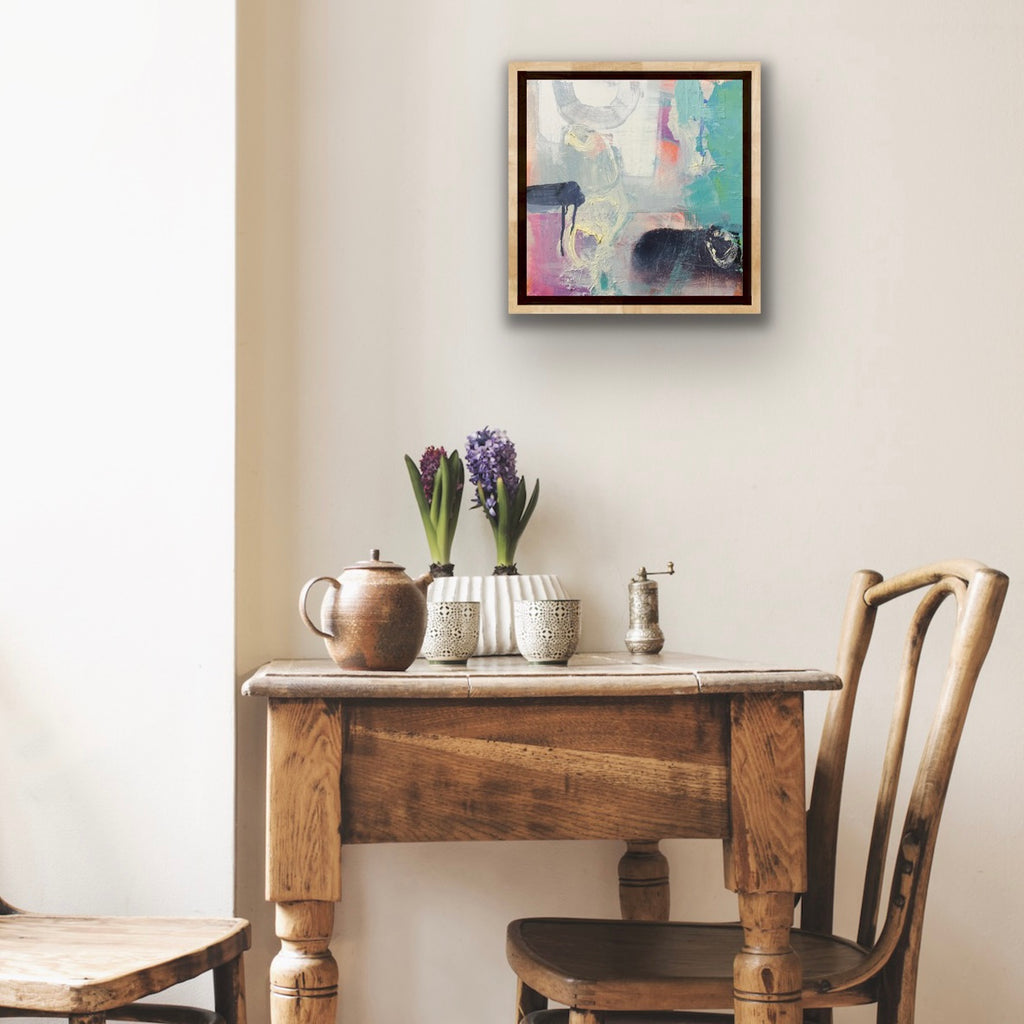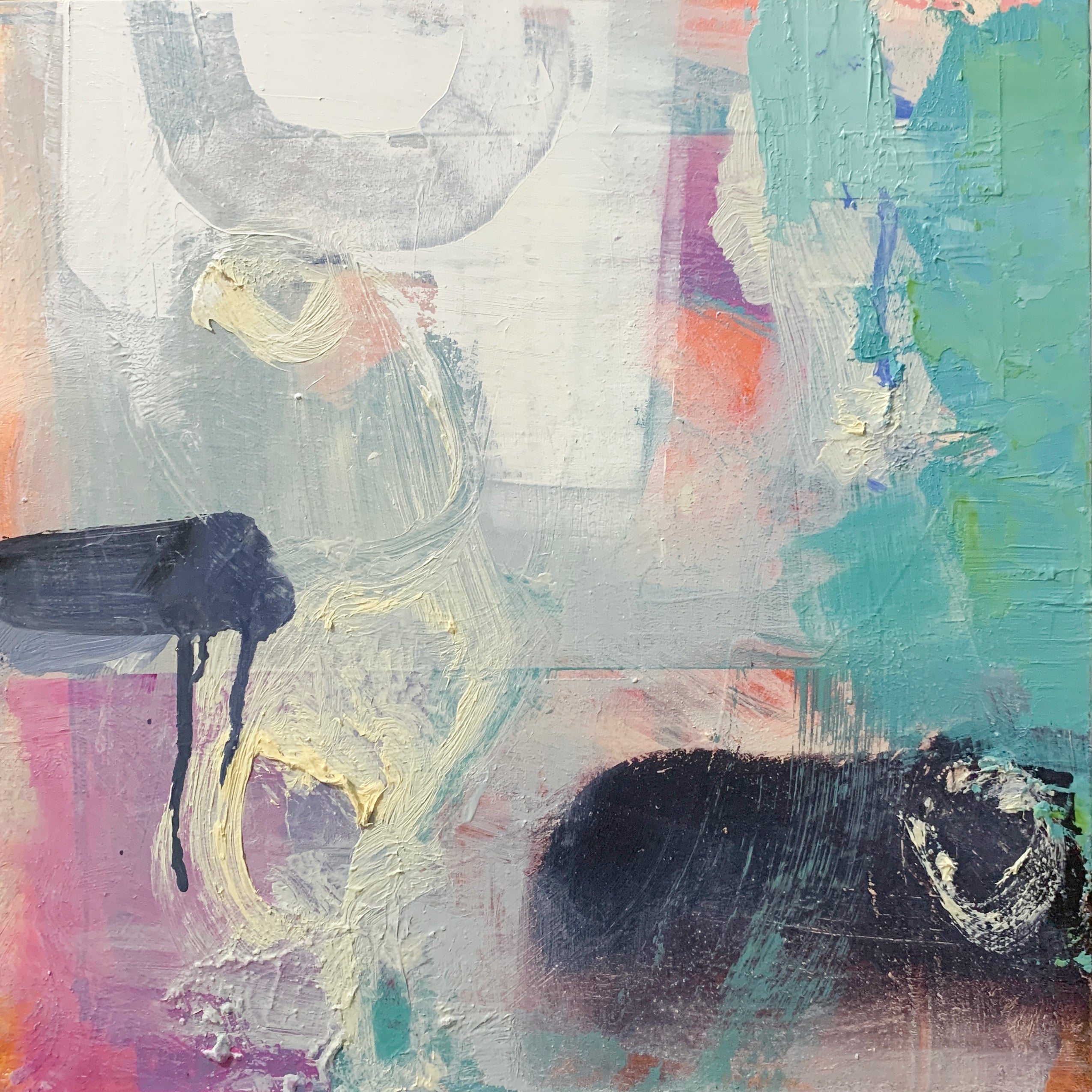 I find ultimate freedom in abstract expressionism and as such, I’m in search of the best way to convey who I am at the moment of creating. It is not to say it is a free-for-all; there is still structure within. I implement the same principles that realist painters employ with the absence of representation: composition, hierarchy, variety, juxtaposition are vital to a successful painting. But I do not limit myself to one medium or the other. I work in oil, acrylics and gouache and depending on what I’m exploring at the time I will choose one or more to express it. I also explore through a combination of paint and collage. It is through all of these various methods and mediums that I am able to share my fullest expression of self and my authenticity. My paintings ultimately are self portraits that are created from both past experiences and also future hopes and dreams. It is my goal to invoke a feeling for the viewer. When it does I have succeede