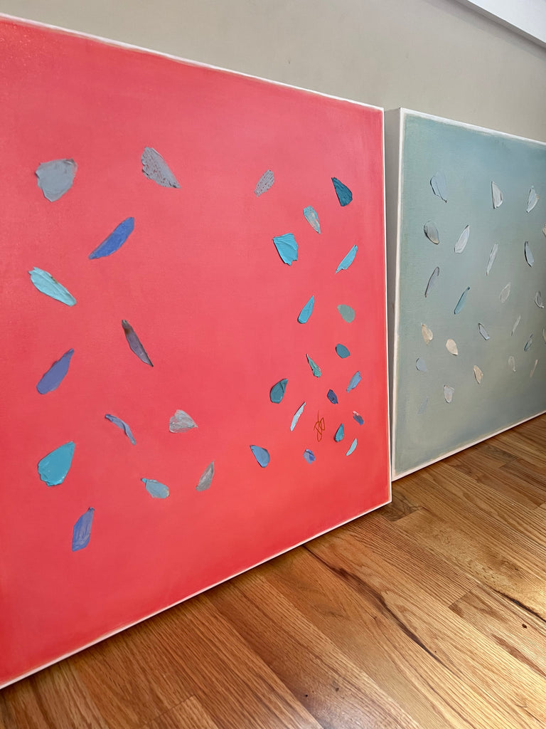 If Diana had a personal motto it would be “everything can be a treasure hunt if you try hard enough.” Growing up in Baton Rouge, Louisiana, Diana was fully trained in the art of the hunt by her mother who would drop all plans at the glimmer of an “Estate Sale Today” sign. Fortunately, this past time led to the ultimate find of a library of art and painting books which sent her in to a rabbit hole of learning about theories, lines, composition, and color that she hasn’t looked back from since. After years of self-study and practice, Diana launched her first collection to the public in fall of 2020. Her first series entitled “The Butterfly Collection” is built upon layers of color, glazers and washes carefully balanced to find the calm in the chaos. Diana names each piece after her favorite inspirational influences from authors to beaches to everyday people in her life that constantly bring her back to awe and wonder. Diana resides in Mount Pleasant, South Carolina with her husband Gabe, and her three boys Dixon, Charles, and Henry. If you are in the area and see a girl with paint chips on her hand digging for shells in the beach or through a stack of books in front of the library, please say hello!