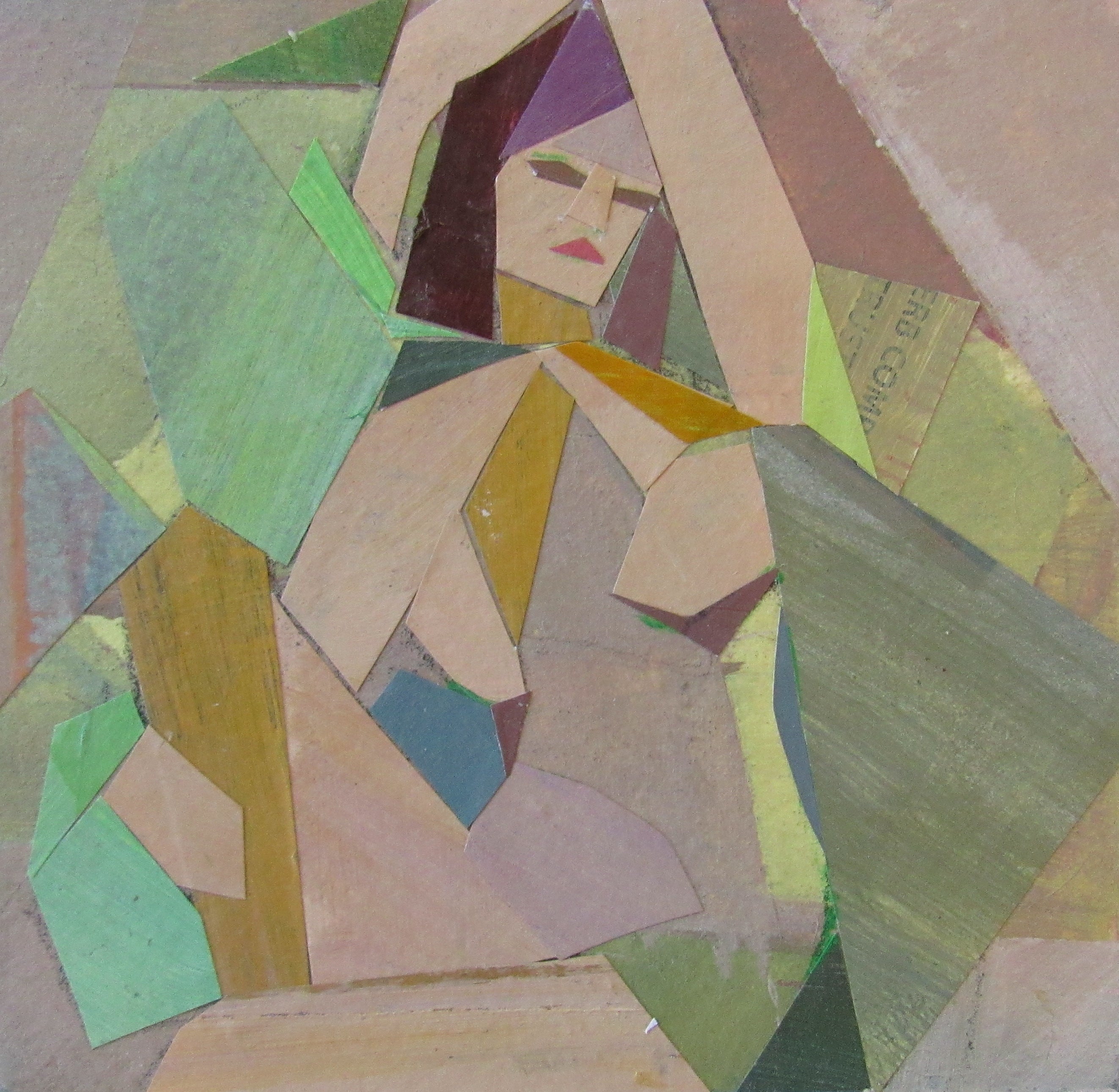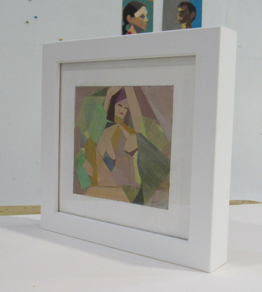 collage on paper, framed in white frame