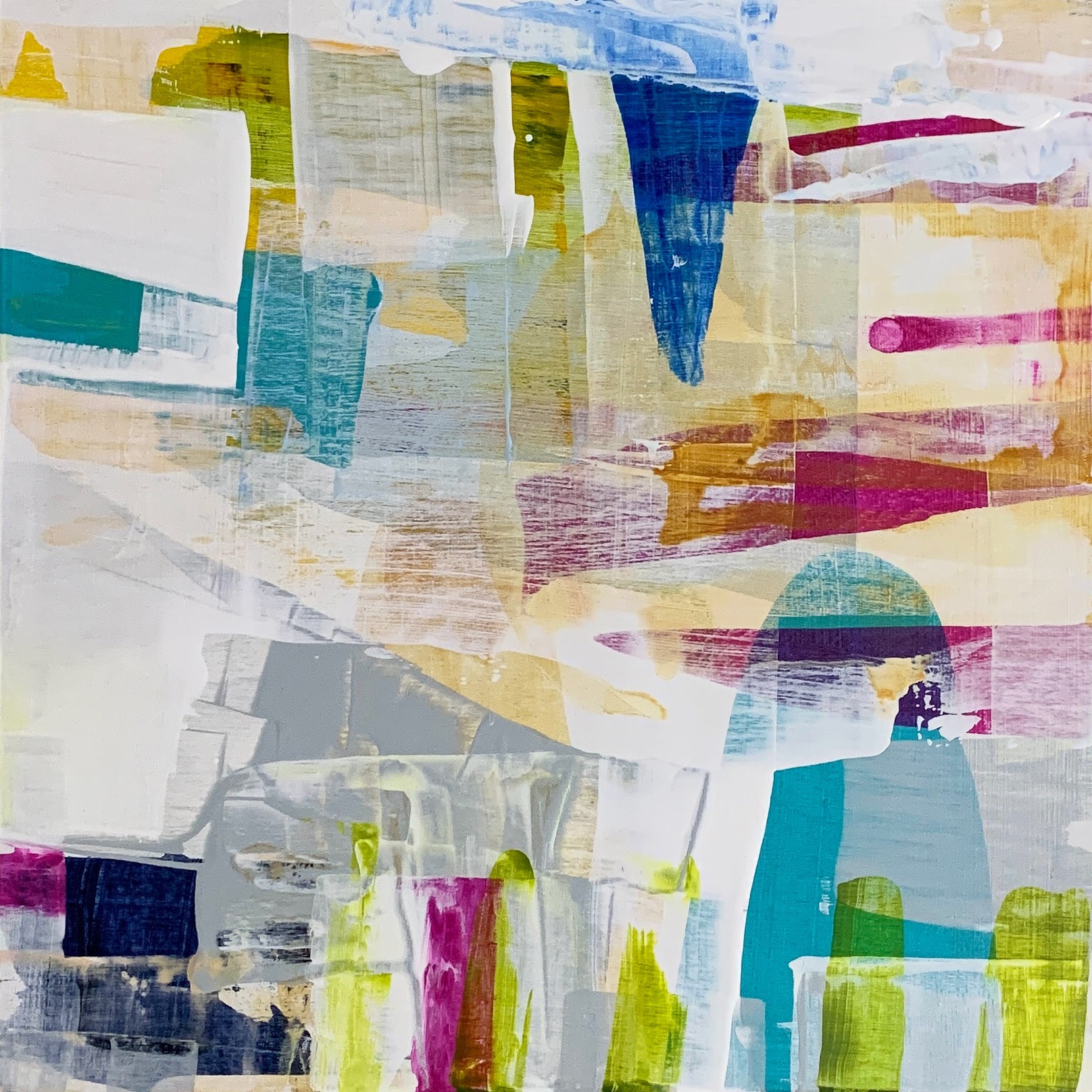 I find ultimate freedom in abstract expressionism and as such, I’m in search of the best way to convey who I am at the moment of creating. It is not to say it is a free-for-all; there is still structure within. I implement the same principles that realist painters employ with the absence of representation: composition, hierarchy, variety, juxtaposition are vital to a successful painting. But I do not limit myself to one medium or the other. I work in oil, acrylics and gouache and depending on what I’m exploring at the time I will choose one or more to express it. I also explore through a combination of paint and collage. It is through all of these various methods and mediums that I am able to share my fullest expression of self and my authenticity. My paintings ultimately are self portraits that are created from both past experiences and also future hopes and dreams. It is my goal to invoke a feeling for the viewer. When it does I have succeede