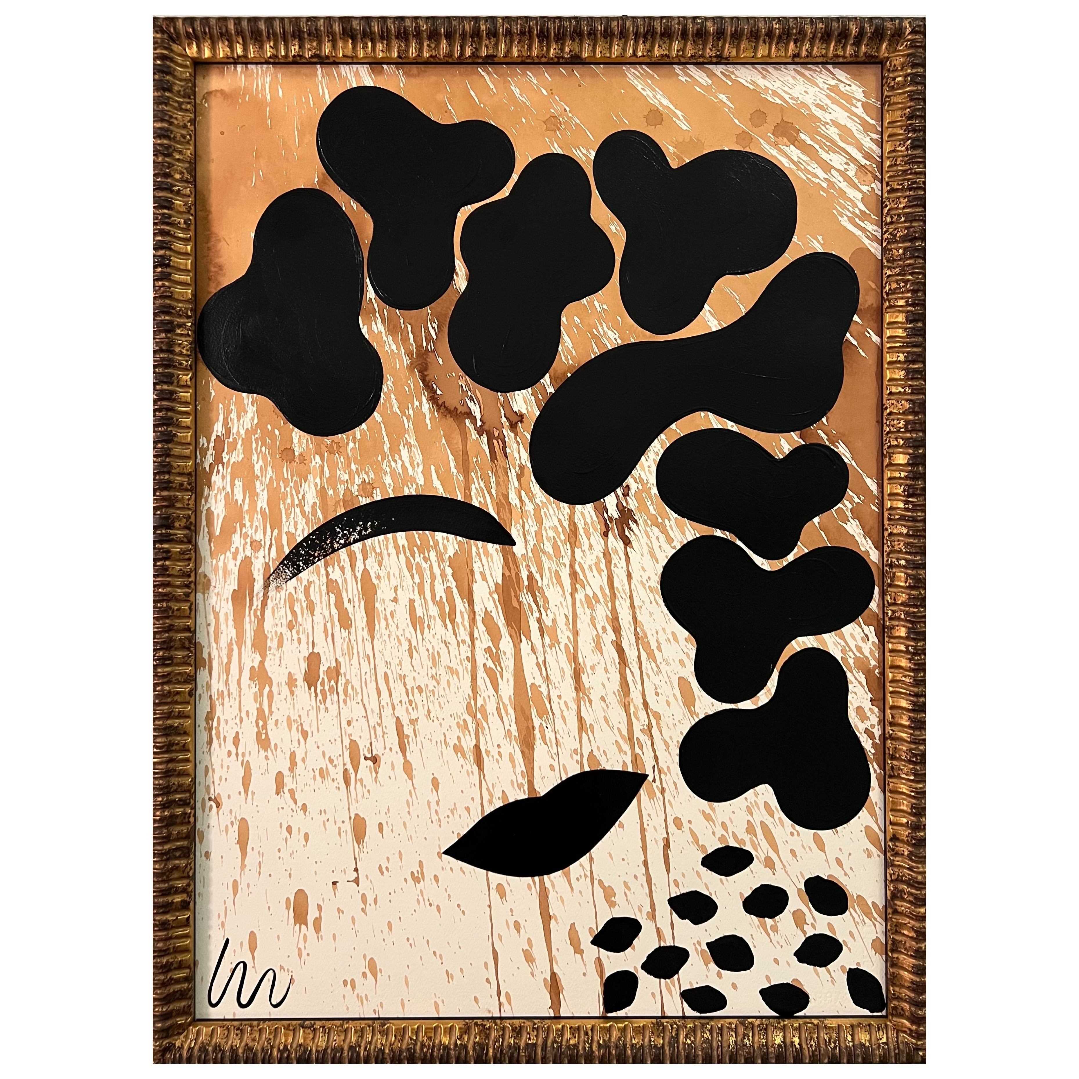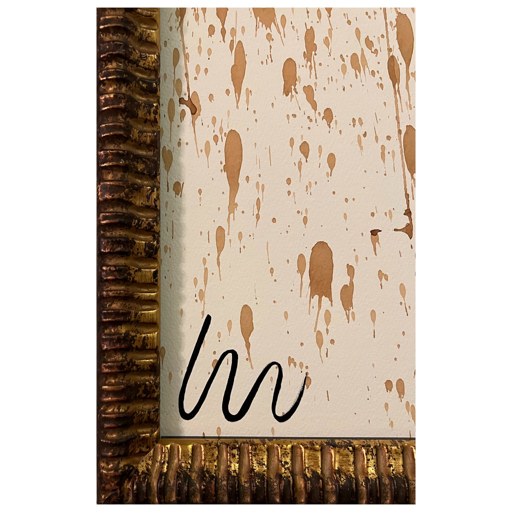 acrylic on tea-stained cold press paper, custom framed in rippled brushed gold frame, with UltraVue Anti-Reflection PlexiGlass