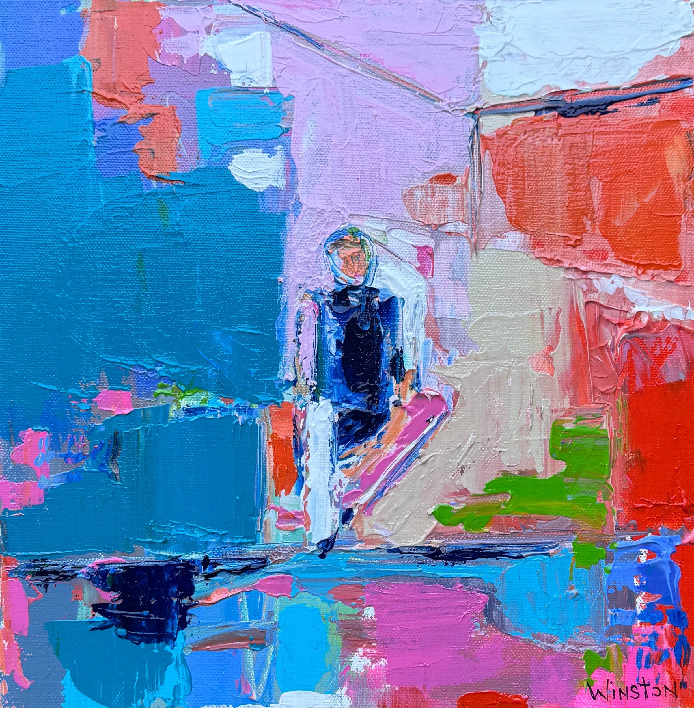 Winston Wiant is originally from Amelia Island, Florida, and full of southern charm. She brings her whimsical and witty delight to each and every painting. Having painted since childhood, she received a Bachelor of Arts degree in Studio Art at Brenau University and has been pursuing her love of art ever since. Her paintings are full of texture, using the palette knife and free brushstrokes to layer the paint, creating one energetic piece after another. She lives in Athens, GA, with her husband and two daughters and paints in her home studio. “Art to me is a form of self-expression. The way I feel that day reflects in my work. My love of bold color and texture is both distinctive and captivating.”