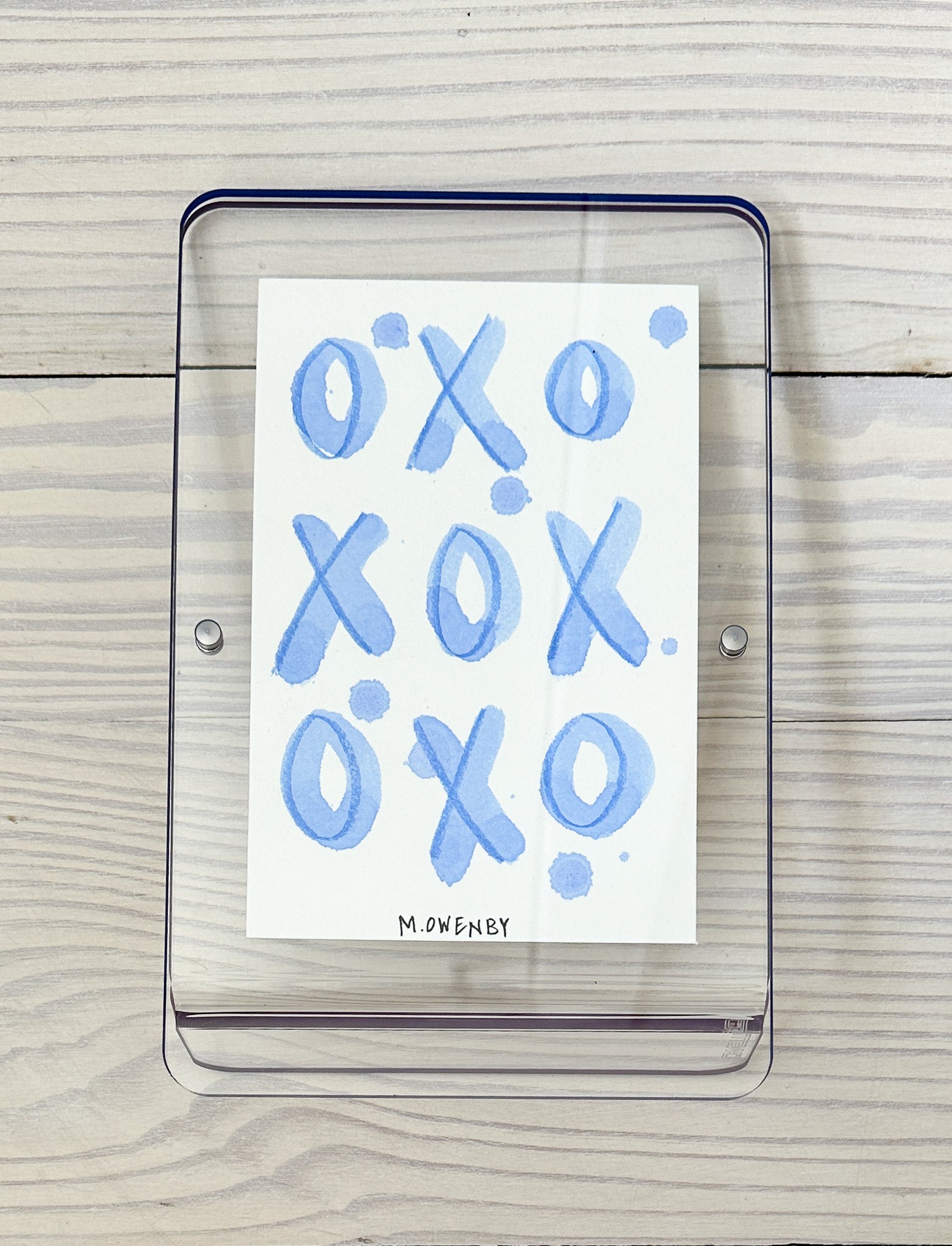 watercolor on paper, in acrylic magnetic frame with colored edge