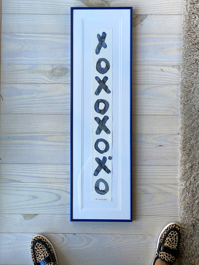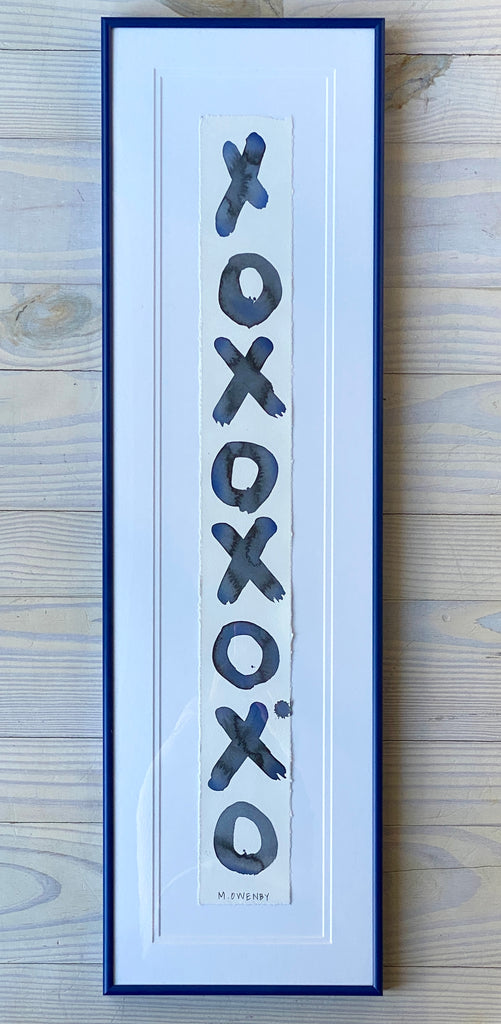 watercolor on deckled edge paper, double mat, in blue metal frame