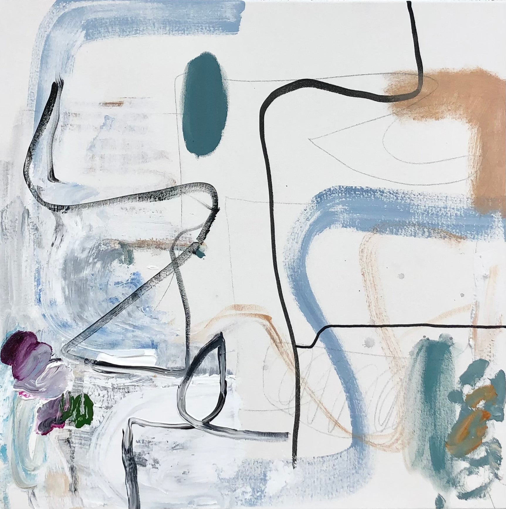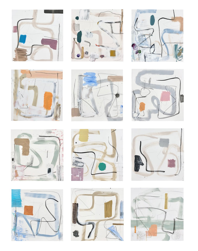Brian Coleman received his degree in graphic design from the art institute of charlotte. “I begin my process with loosely drawing and exploring the freedom of gesture. It’s kind of like watching a bird soar, you don’t know if it will glide left, bend right, sail up or down.” Alternating between fluid and structured gestures undoubtedly reveals how Brian makes sense of the world as he moves through it. Coleman draws from a vast library of his free drawings to produce these layered creations that groove, and flow punctuated by color, line and forms that bring the rhythm of the painting to life. The images are pieces and parts of the past, present and future, in the process of becoming something else. The works become stories of their own, they come together to become another place in time. “I am never arriving at a place, and I am constantly using my pieces and parts in the process of a journey that never ends.”