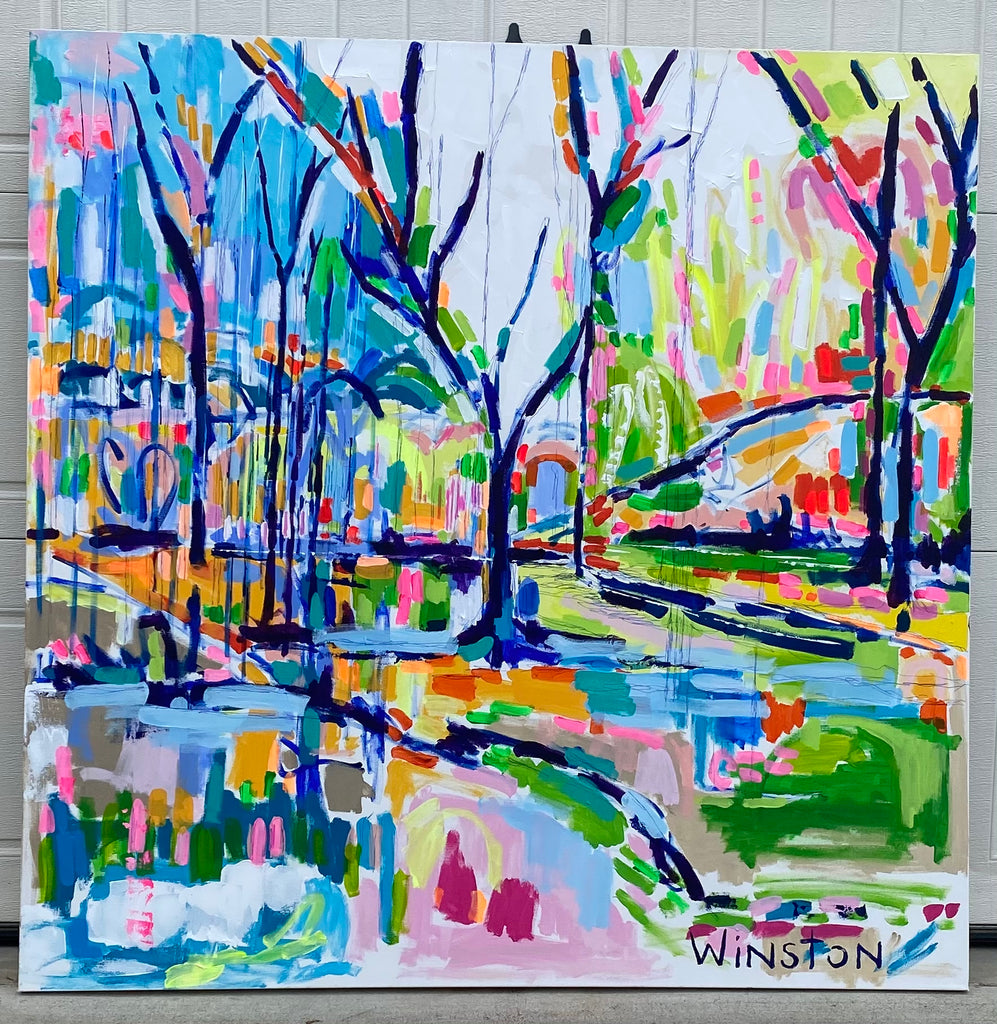 Winston Wiant is originally from Amelia Island, Florida, and full of southern charm. She brings her whimsical and witty delight to each and every painting. Having painted since childhood, she received a Bachelor of Arts degree in Studio Art at Brenau University and has been pursuing her love of art ever since. Her paintings are full of texture, using the palette knife and free brushstrokes to layer the paint, creating one energetic piece after another. She lives in Athens, GA, with her husband and two daughters and paints in her home studio. “Art to me is a form of self-expression. The way I feel that day reflects in my work. My love of bold color and texture is both distinctive and captivating.”