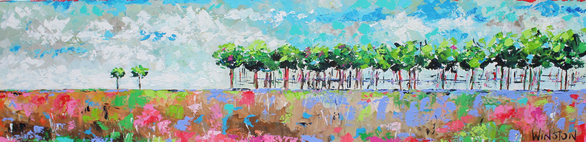 Winston Wiant is originally from Amelia Island, Florida, and full of southern charm. She brings her whimsical and witty delight to each and every painting. Having painted since childhood, she received a Bachelor of Arts degree in Studio Art at Brenau University and has been pursuing her love of art ever since. Her paintings are full of texture, using the palette knife and free brushstrokes to layer the paint, creating one energetic piece after another. She lives in Athens, GA, with her husband and two daughters and paints in her home studio. “Art to me is a form of self-expression. The way I feel that day reflects in my work. My love of bold color and texture is both distinctive and captivating.”