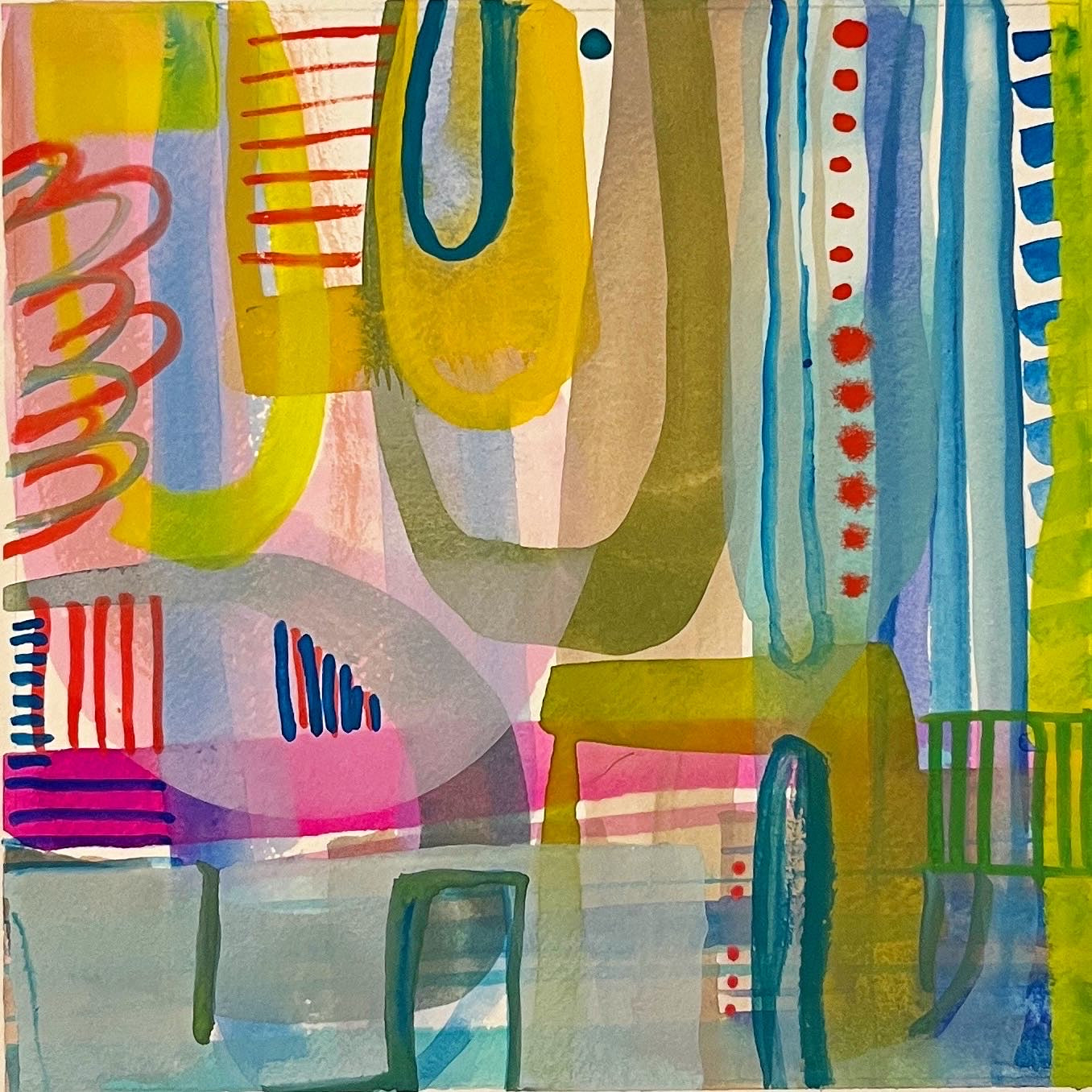 I find ultimate freedom in abstract expressionism and as such, I’m in search of the best way to convey who I am at the moment of creating. It is not to say it is a free-for-all; there is still structure within. I implement the same principles that realist painters employ with the absence of representation: composition, hierarchy, variety, juxtaposition are vital to a successful painting. But I do not limit myself to one medium or the other. I work in oil, acrylics and gouache and depending on what I’m exploring at the time I will choose one or more to express it. I also explore through a combination of paint and collage. It is through all of these various methods and mediums that I am able to share my fullest expression of self and my authenticity. My paintings ultimately are self portraits that are created from both past experiences and also future hopes and dreams. It is my goal to invoke a feeling for the viewer. When it does I have succeede