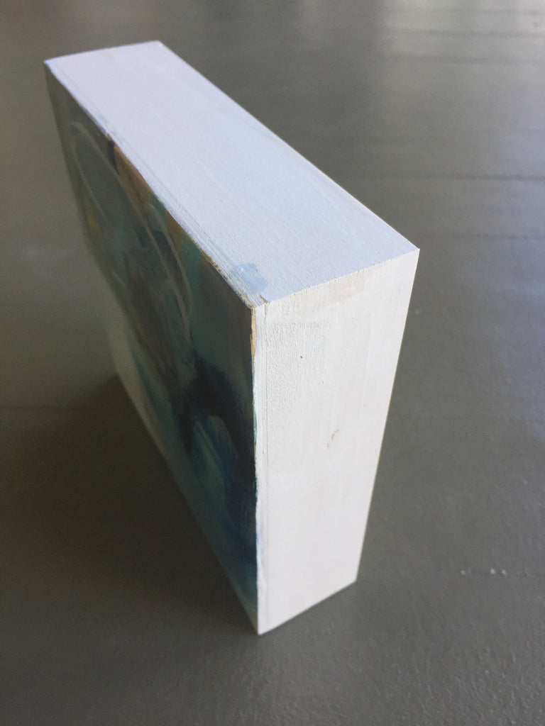 acrylic, oil pastel, and resin 1.5" deep wood panel