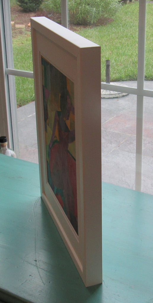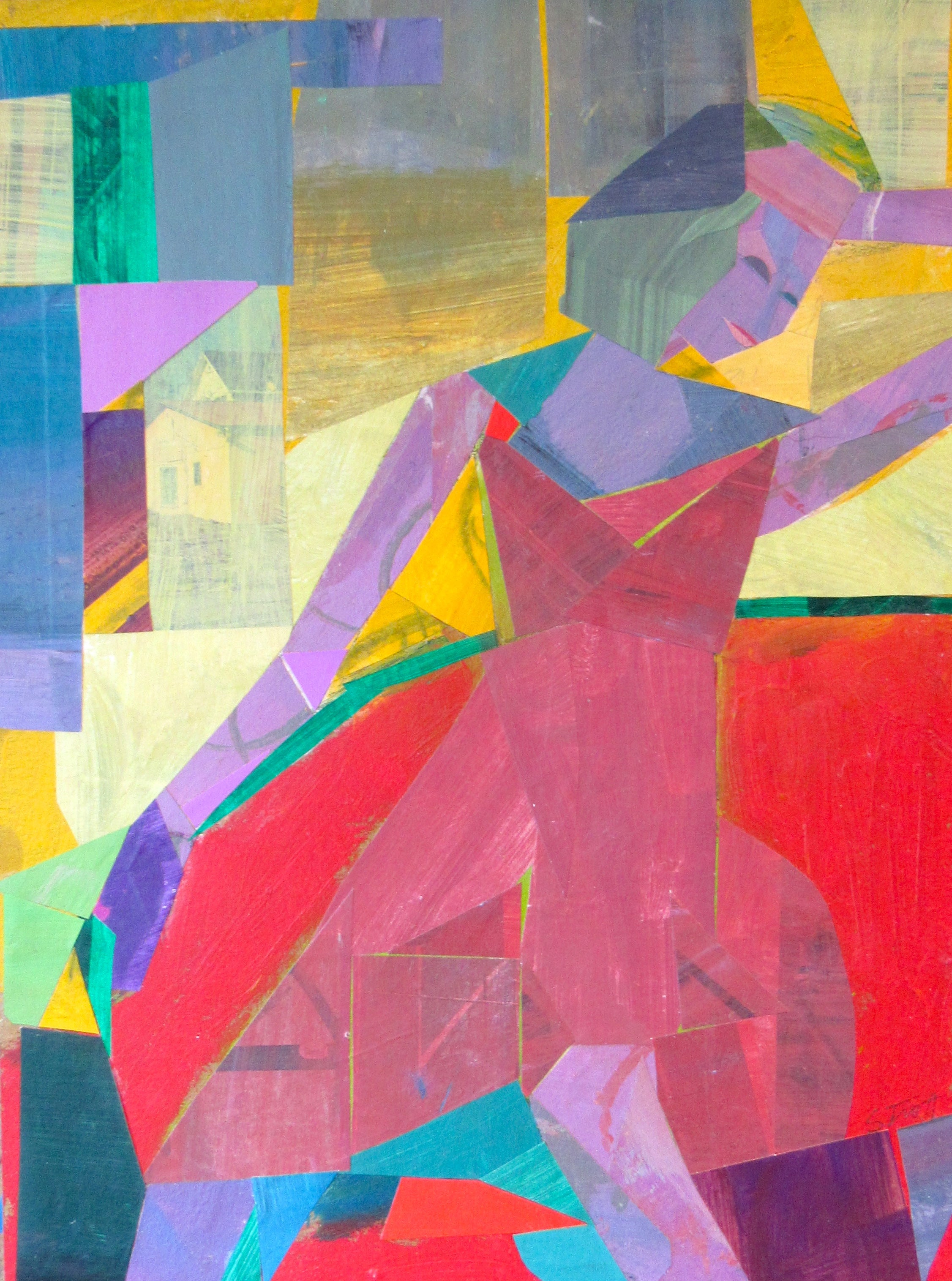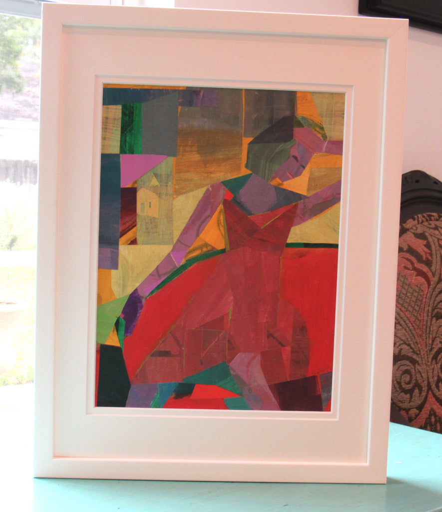 collage on paper, framed in white frame