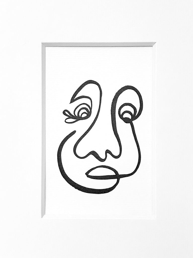 India ink on white 140lb watercolor paper, matted in white
