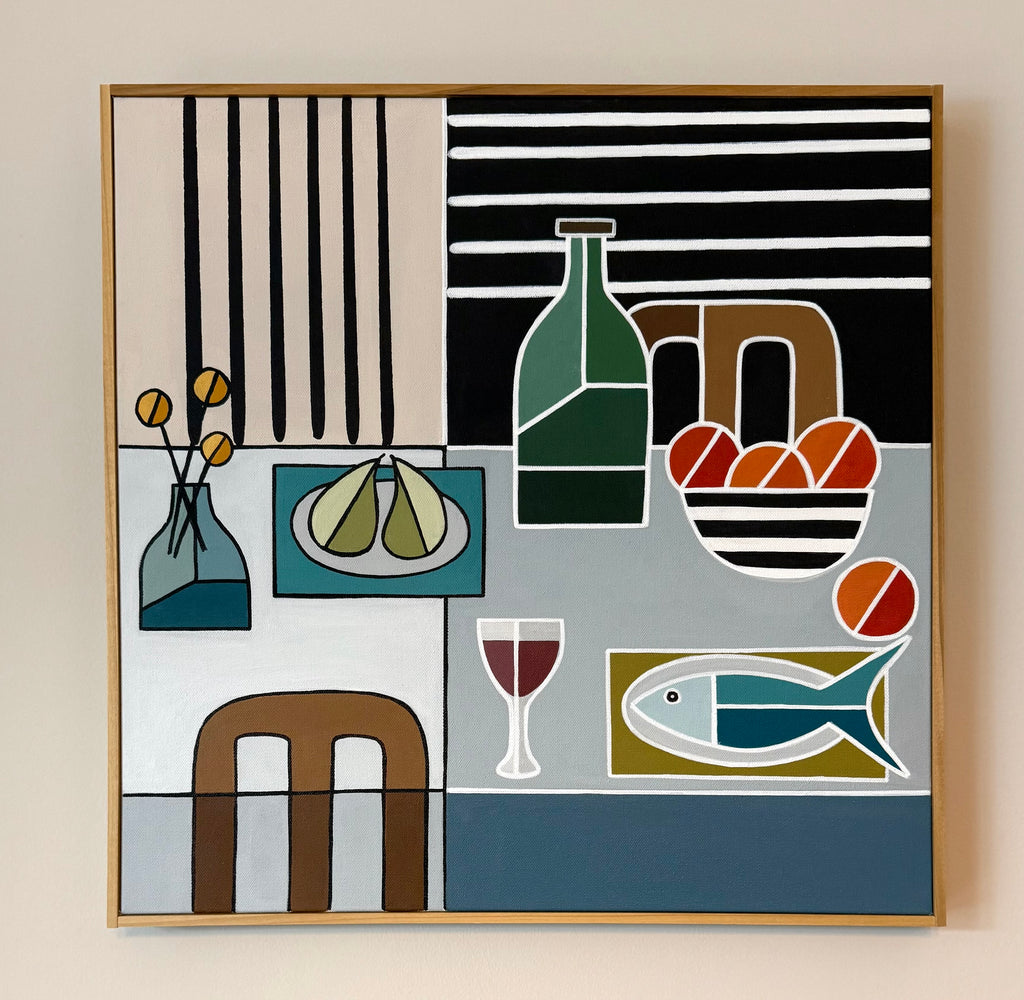 Cindy DeAntonio is a mixed media artist who uses distinct lines and shapes to create her unique and highly recognizable style. Her work is comprised of abstracts, modern interpretations of traditional lowcountry landscapes, and cubist inspired still lifes. She draws inspiration from a variety of sources including fashion, design and her natural surroundings. Cindys love of bold colors and balance are apparent in each one of her pieces. Her work have been featured in Coastal Living, Serena and Lily, Garden and Gun, and SIP magazine. Cindy grew up in Columbia, South Carolina and earned a Studio Art degree from the University of South Carolina. She currently lives on Isle of Palms, SC with her family.