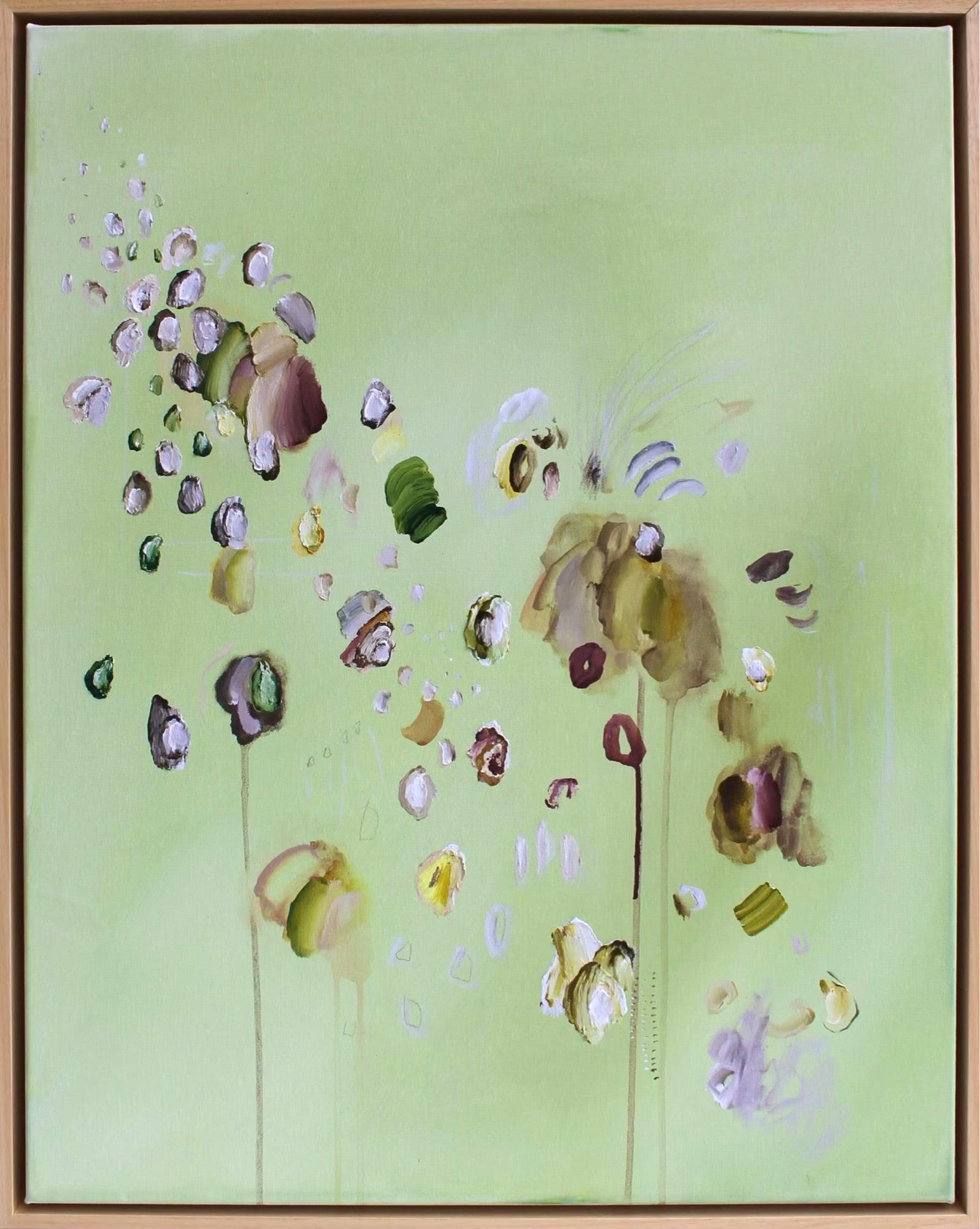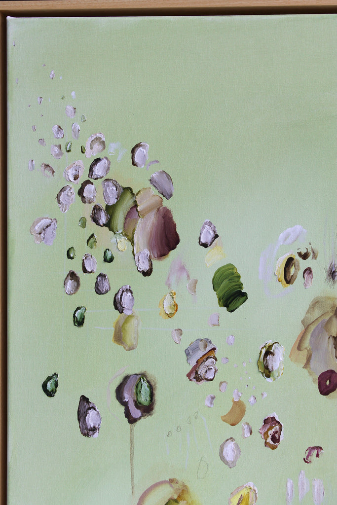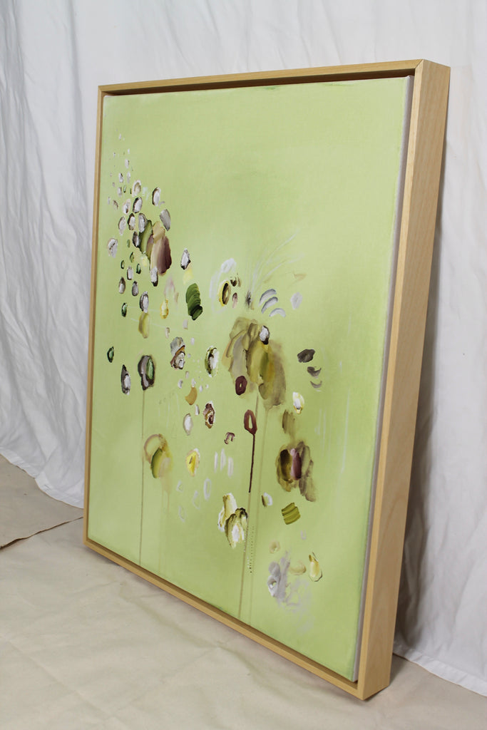 acrylic and pastel on gallery wrapped canvas, in wood floater frame