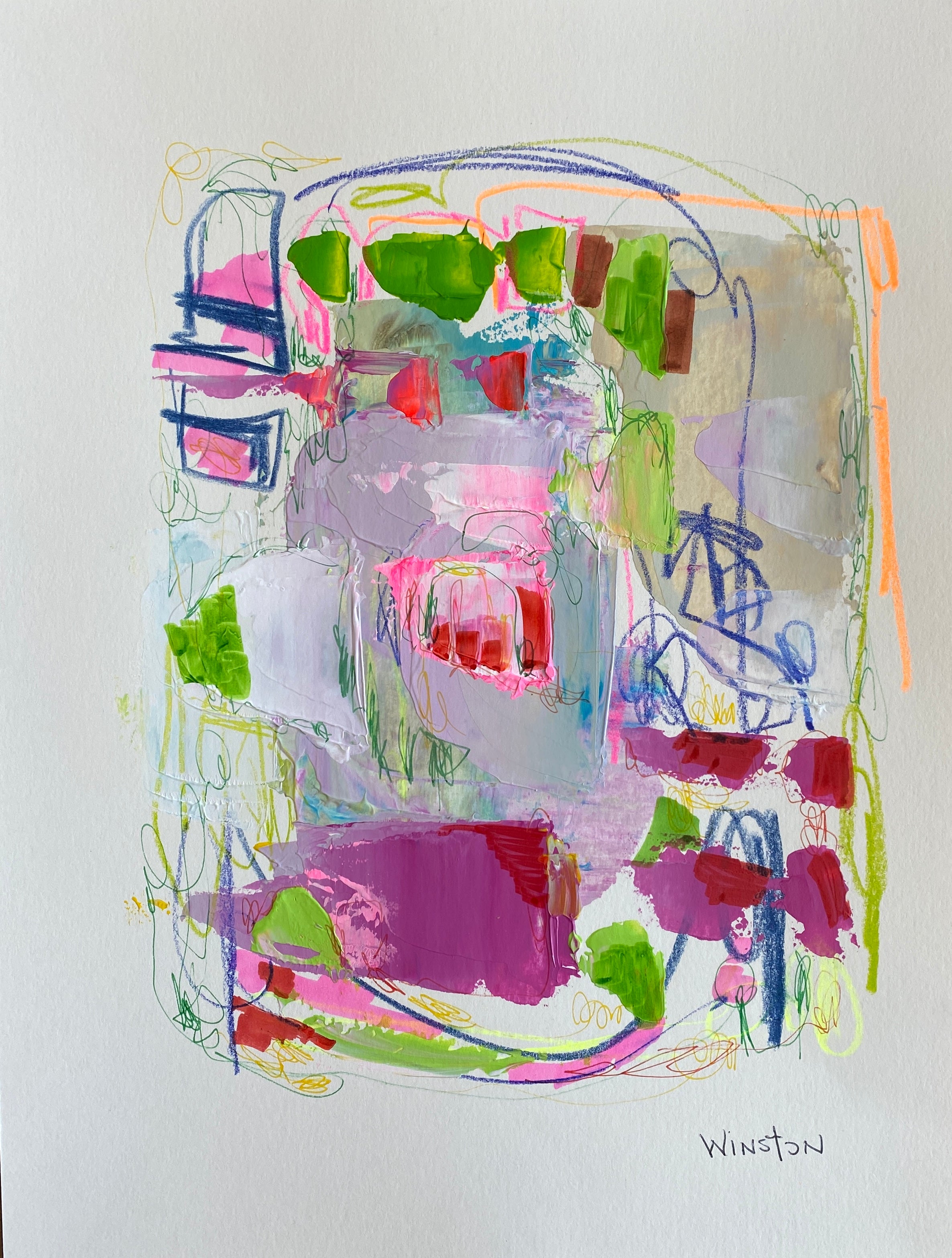 Winston Wiant is originally from Amelia Island, Florida, and full of southern charm. She brings her whimsical and witty delight to each and every painting. Having painted since childhood, she received a Bachelor of Arts degree in Studio Art at Brenau University and has been pursuing her love of art ever since. Her paintings are full of texture, using the palette knife and free brushstrokes to layer the paint, creating one energetic piece after another. She lives in Athens, GA, with her husband and two daughters and paints in her home studio. “Art to me is a form of self-expression. The way I feel that day reflects in my work. My love of bold color and texture is both distinctive and captivating.”