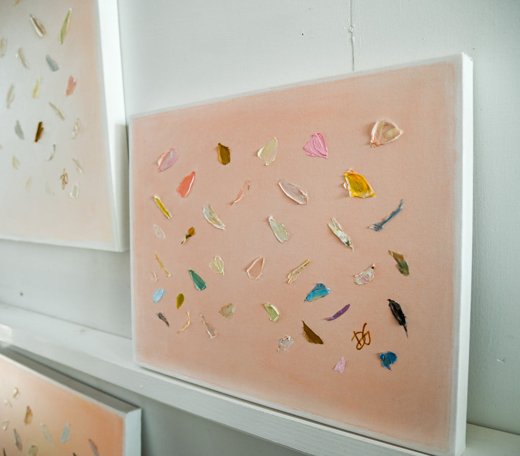 If Diana had a personal motto it would be “everything can be a treasure hunt if you try hard enough.” Growing up in Baton Rouge, Louisiana, Diana was fully trained in the art of the hunt by her mother who would drop all plans at the glimmer of an “Estate Sale Today” sign. Fortunately, this past time led to the ultimate find of a library of art and painting books which sent her in to a rabbit hole of learning about theories, lines, composition, and color that she hasn’t looked back from since. After years of self-study and practice, Diana launched her first collection to the public in fall of 2020. Her first series entitled “The Butterfly Collection” is built upon layers of color, glazers and washes carefully balanced to find the calm in the chaos. Diana names each piece after her favorite inspirational influences from authors to beaches to everyday people in her life that constantly bring her back to awe and wonder. Diana resides in Mount Pleasant, South Carolina with her husband Gabe, and her three boys Dixon, Charles, and Henry. If you are in the area and see a girl with paint chips on her hand digging for shells in the beach or through a stack of books in front of the library, please say hello!