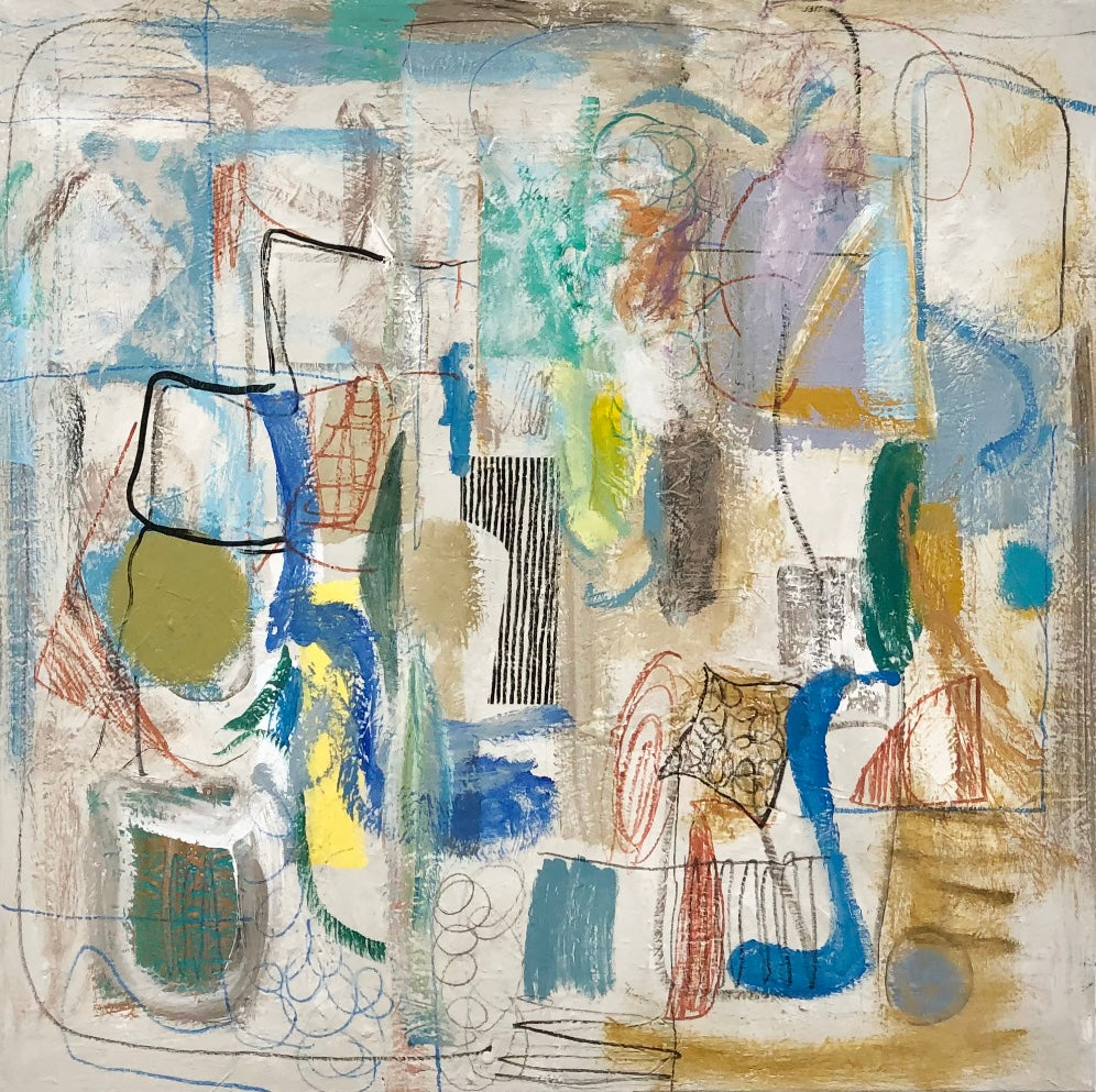 Brian Coleman received his degree in graphic design from the art institute of charlotte. “I begin my process with loosely drawing and exploring the freedom of gesture. It’s kind of like watching a bird soar, you don’t know if it will glide left, bend right, sail up or down.” Alternating between fluid and structured gestures undoubtedly reveals how Brian makes sense of the world as he moves through it. Coleman draws from a vast library of his free drawings to produce these layered creations that groove, and flow punctuated by color, line and forms that bring the rhythm of the painting to life. The images are pieces and parts of the past, present and future, in the process of becoming something else. The works become stories of their own, they come together to become another place in time. “I am never arriving at a place, and I am constantly using my pieces and parts in the process of a journey that never ends.”