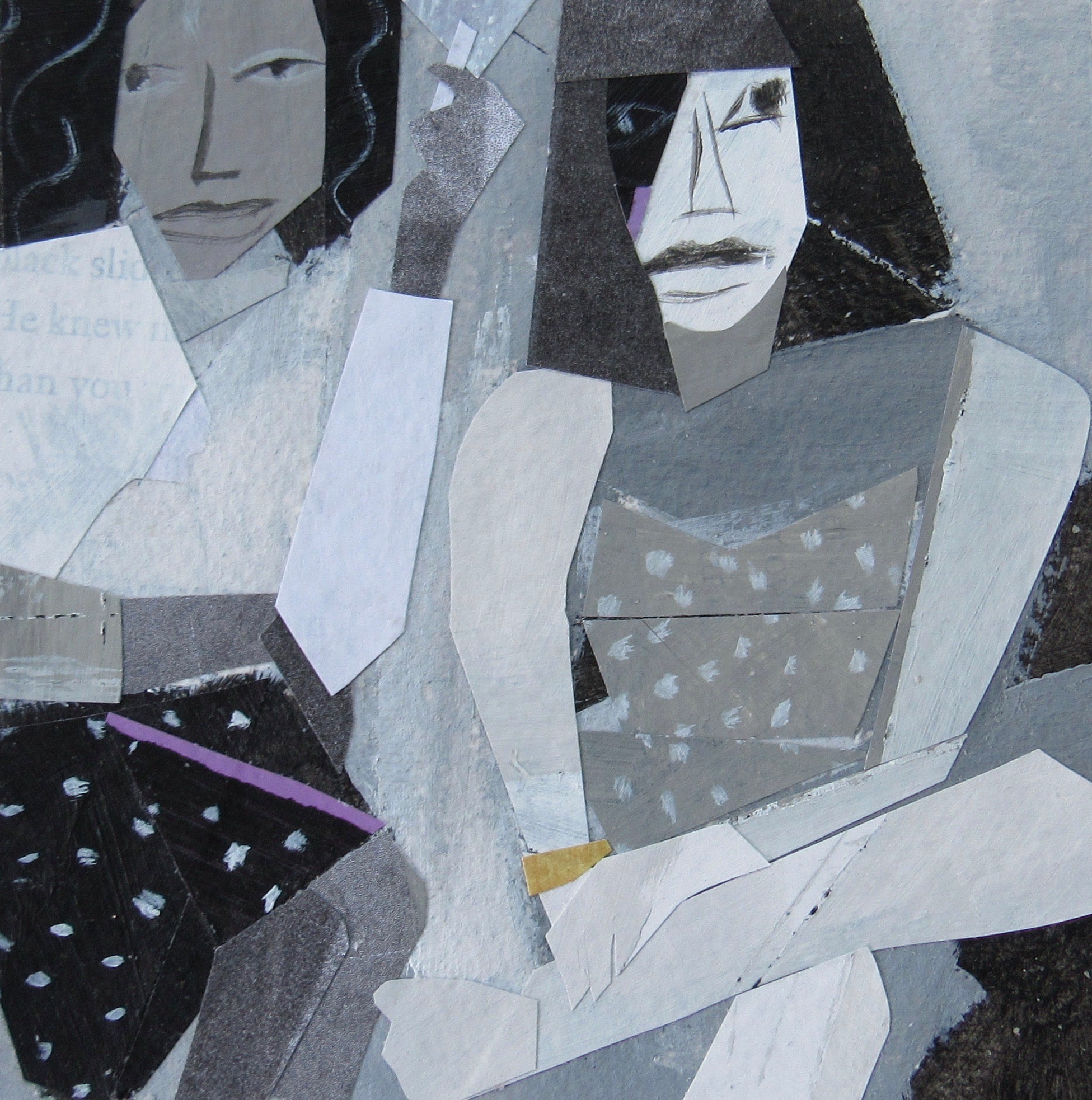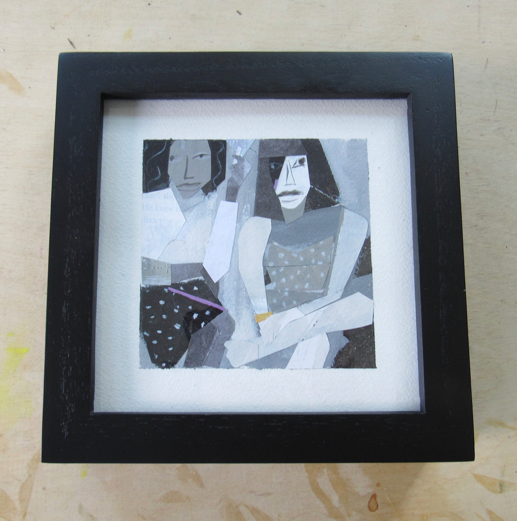collage on paper, in black frame