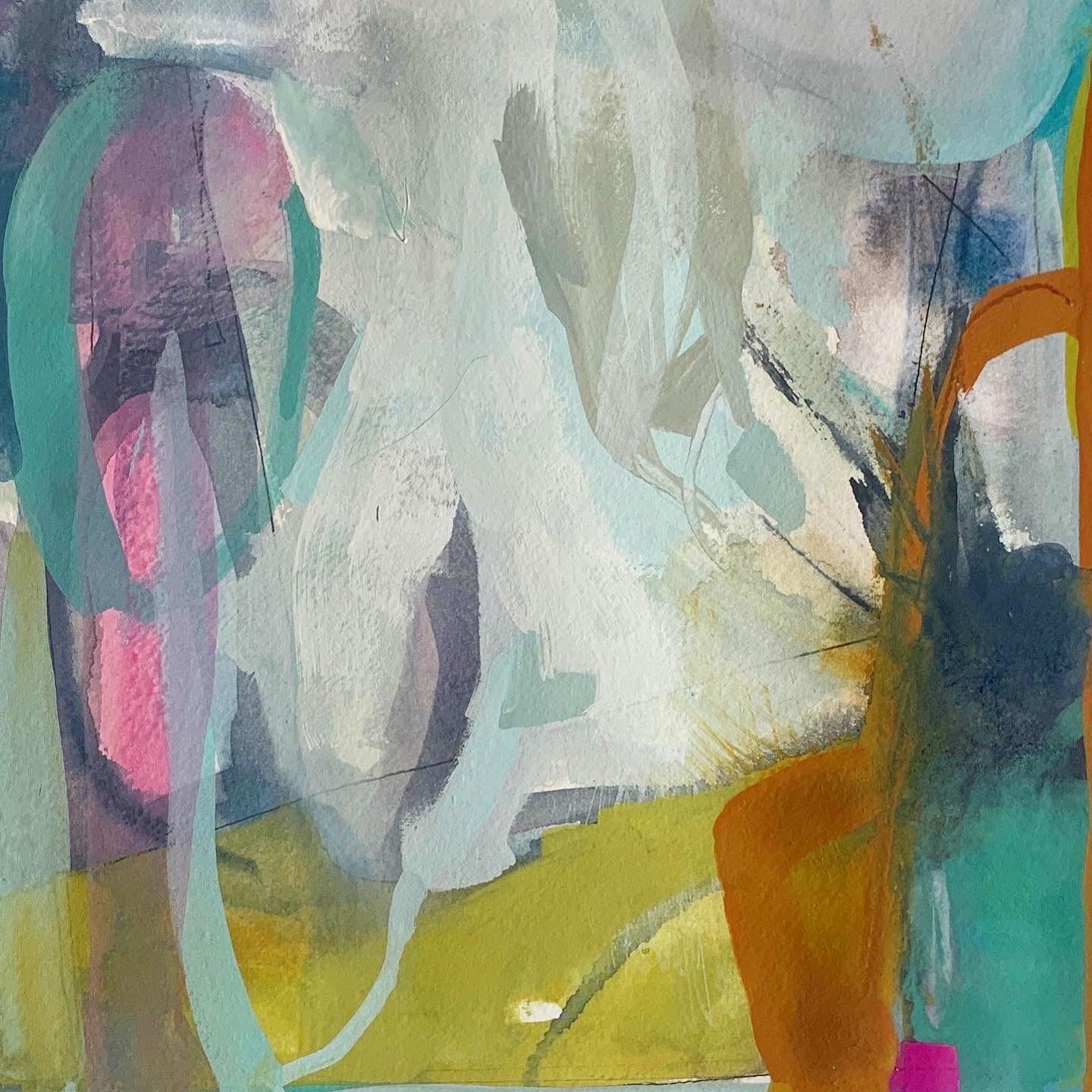 I find ultimate freedom in abstract expressionism and as such, I’m in search of the best way to convey who I am at the moment of creating. It is not to say it is a free-for-all; there is still structure within. I implement the same principles that realist painters employ with the absence of representation: composition, hierarchy, variety, juxtaposition are vital to a successful painting. But I do not limit myself to one medium or the other. I work in oil, acrylics and gouache and depending on what I’m exploring at the time I will choose one or more to express it. I also explore through a combination of paint and collage. It is through all of these various methods and mediums that I am able to share my fullest expression of self and my authenticity. My paintings ultimately are self portraits that are created from both past experiences and also future hopes and dreams. It is my goal to invoke a feeling for the viewer. When it does I have succeede