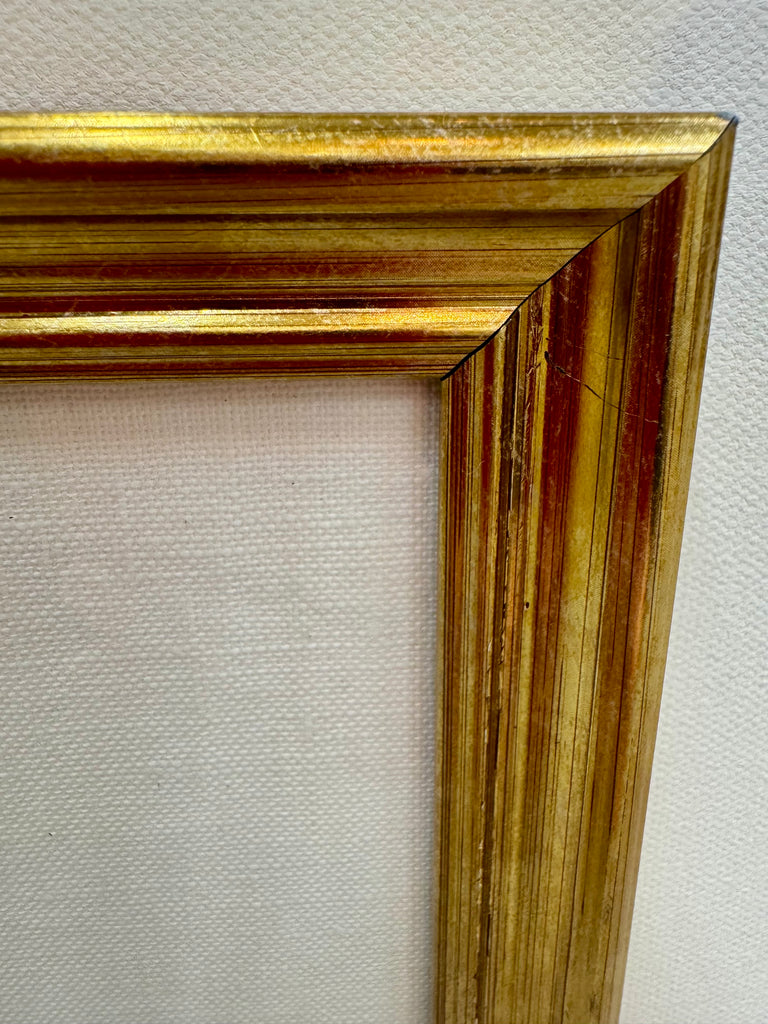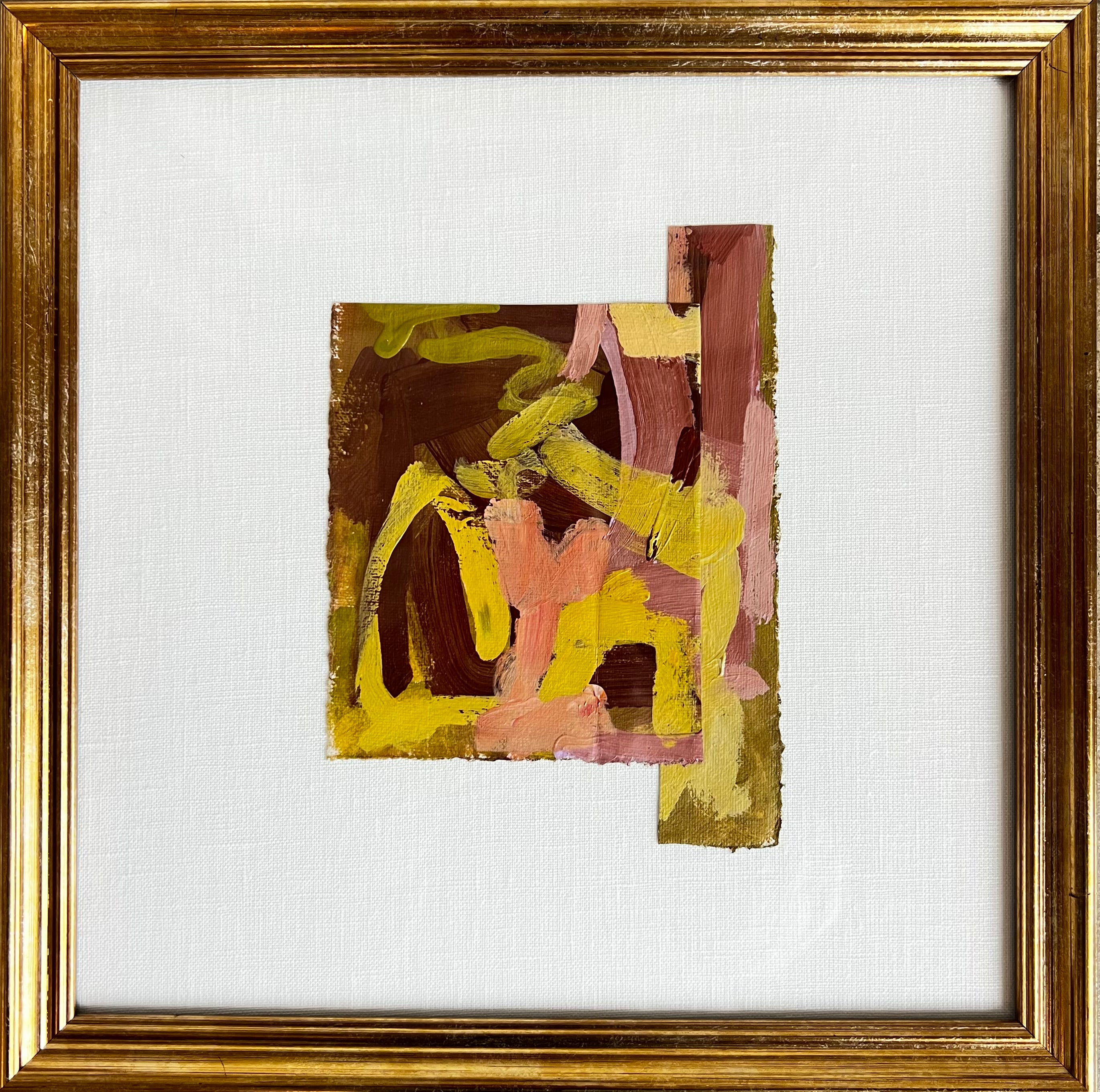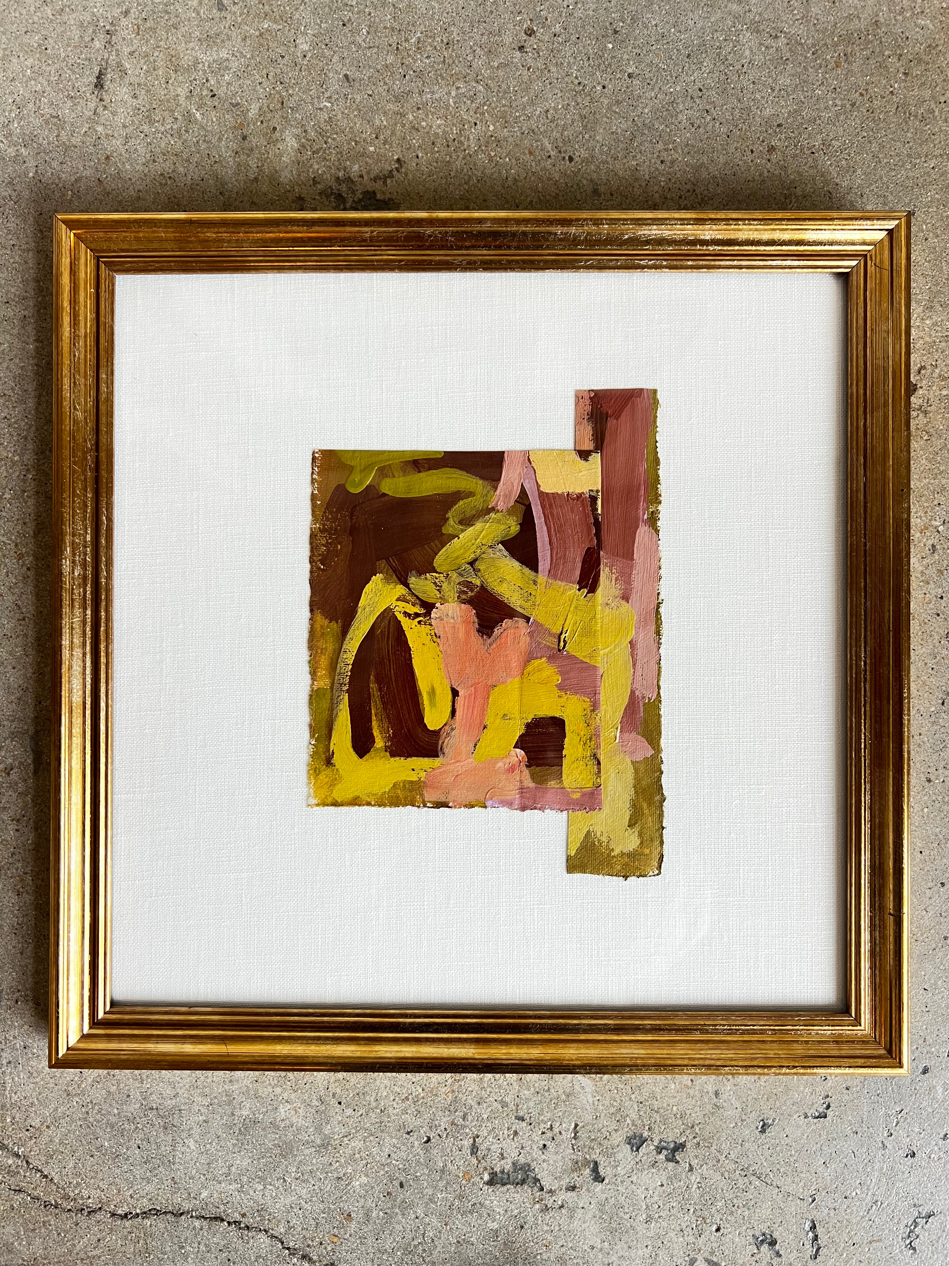 mixed media collage on linen mat. framed in gold frame
