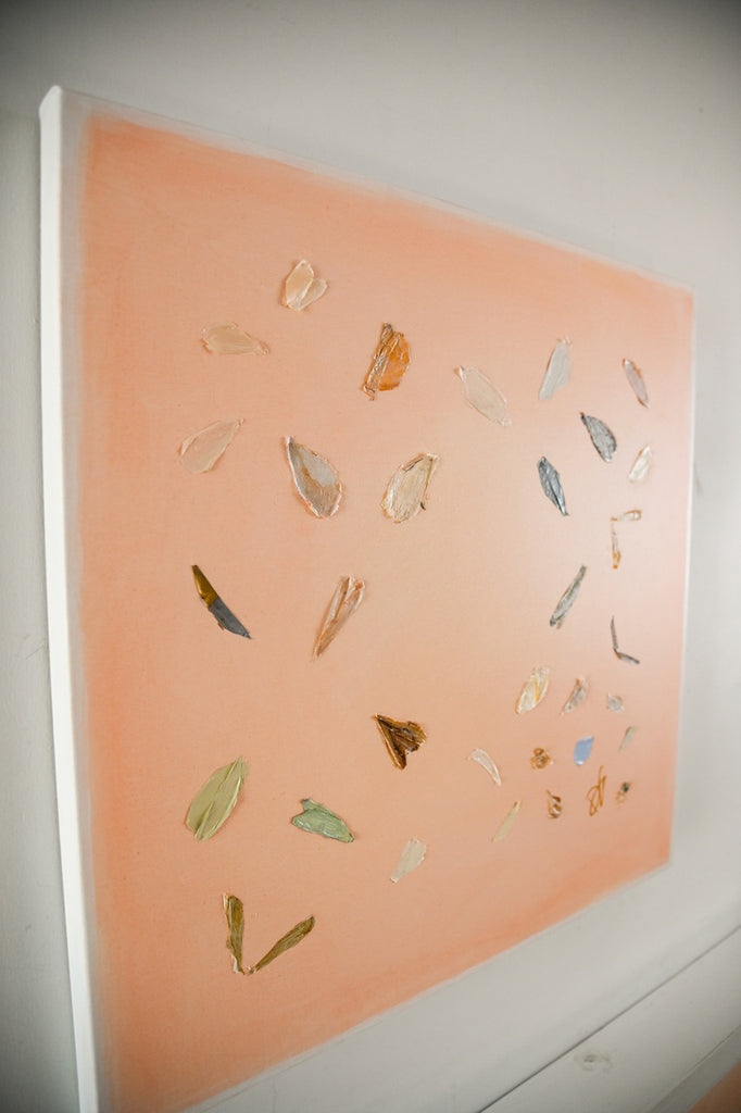 If Diana had a personal motto it would be “everything can be a treasure hunt if you try hard enough.” Growing up in Baton Rouge, Louisiana, Diana was fully trained in the art of the hunt by her mother who would drop all plans at the glimmer of an “Estate Sale Today” sign. Fortunately, this past time led to the ultimate find of a library of art and painting books which sent her in to a rabbit hole of learning about theories, lines, composition, and color that she hasn’t looked back from since. After years of self-study and practice, Diana launched her first collection to the public in fall of 2020. Her first series entitled “The Butterfly Collection” is built upon layers of color, glazers and washes carefully balanced to find the calm in the chaos. Diana names each piece after her favorite inspirational influences from authors to beaches to everyday people in her life that constantly bring her back to awe and wonder. Diana resides in Mount Pleasant, South Carolina with her husband Gabe, and her three boys Dixon, Charles, and Henry. If you are in the area and see a girl with paint chips on her hand digging for shells in the beach or through a stack of books in front of the library, please say hello!