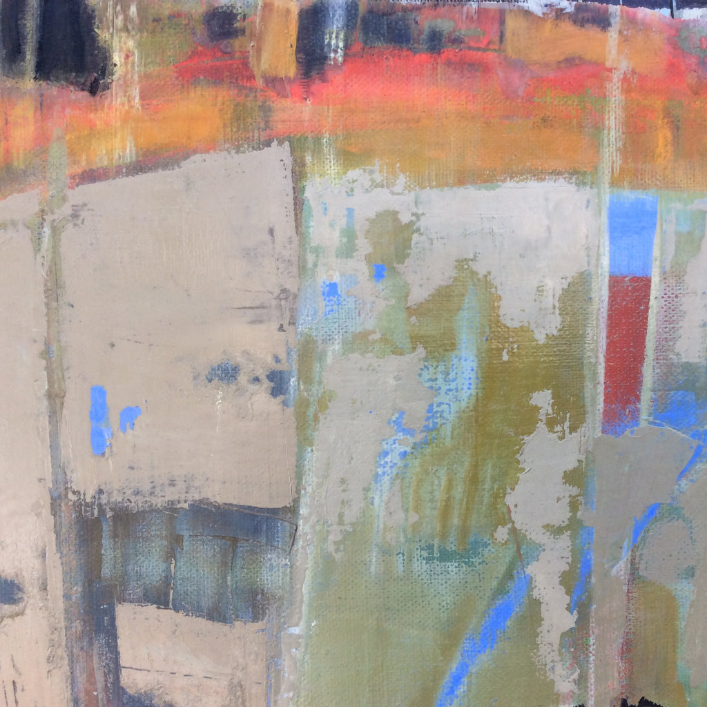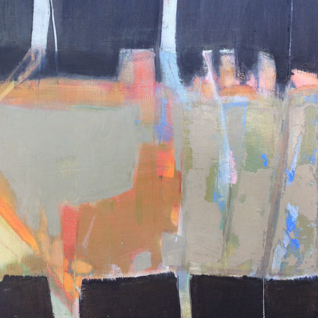 oil and cold wax on gallery wrapped linen canvas, gold-rimmed black floating frame