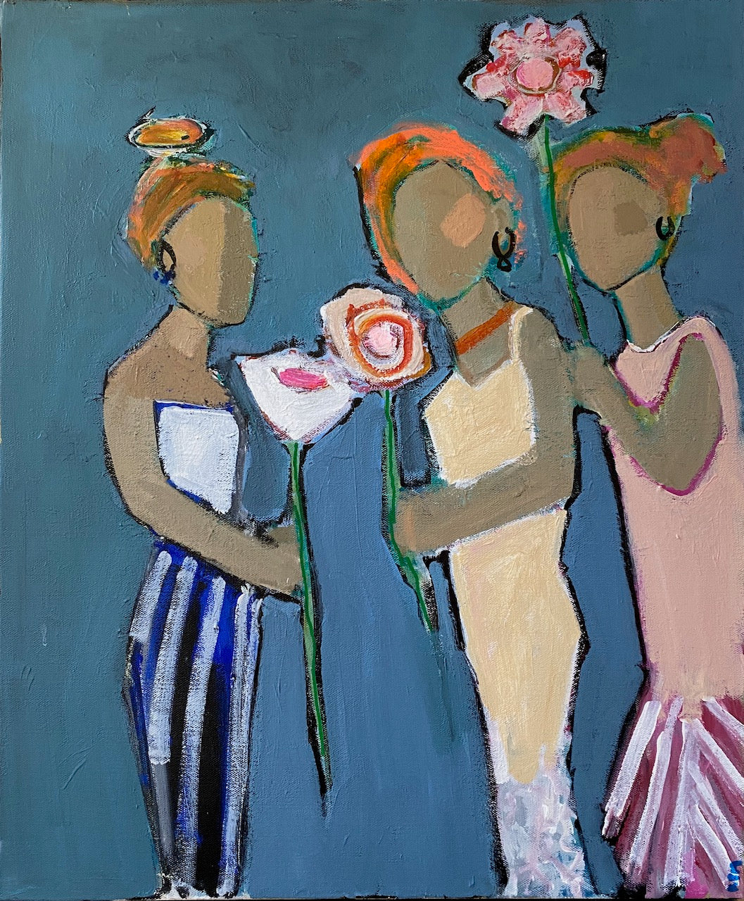 Page Morris picked up a paintbrush in third grade and never looked back. Largely self-taught, her client list reaches as far as Canada and includes syndicated columnist Kathleen Parker. Galleries representing her work include: Verve and Over the Mantle in Columbia, SC; Grand Bohemian Gallery in Charleston, SC and One Kings Lane. "My subject matter is women who are feminine, colorful, playful, strong, and beautiful. I use paper, pencil, markers, oil sticks, and paint to achieve a multi-dimensional look. I love texture because the viewers see even more when they stop to take a second look. I adhere to a rigid schedule of painting each day. Creativity only happens if I'm hard at work in my studio. I love what I do and hope my viewers can see that. It's a joyous experience to pick up a paintbrush. It's what I do and what I am."