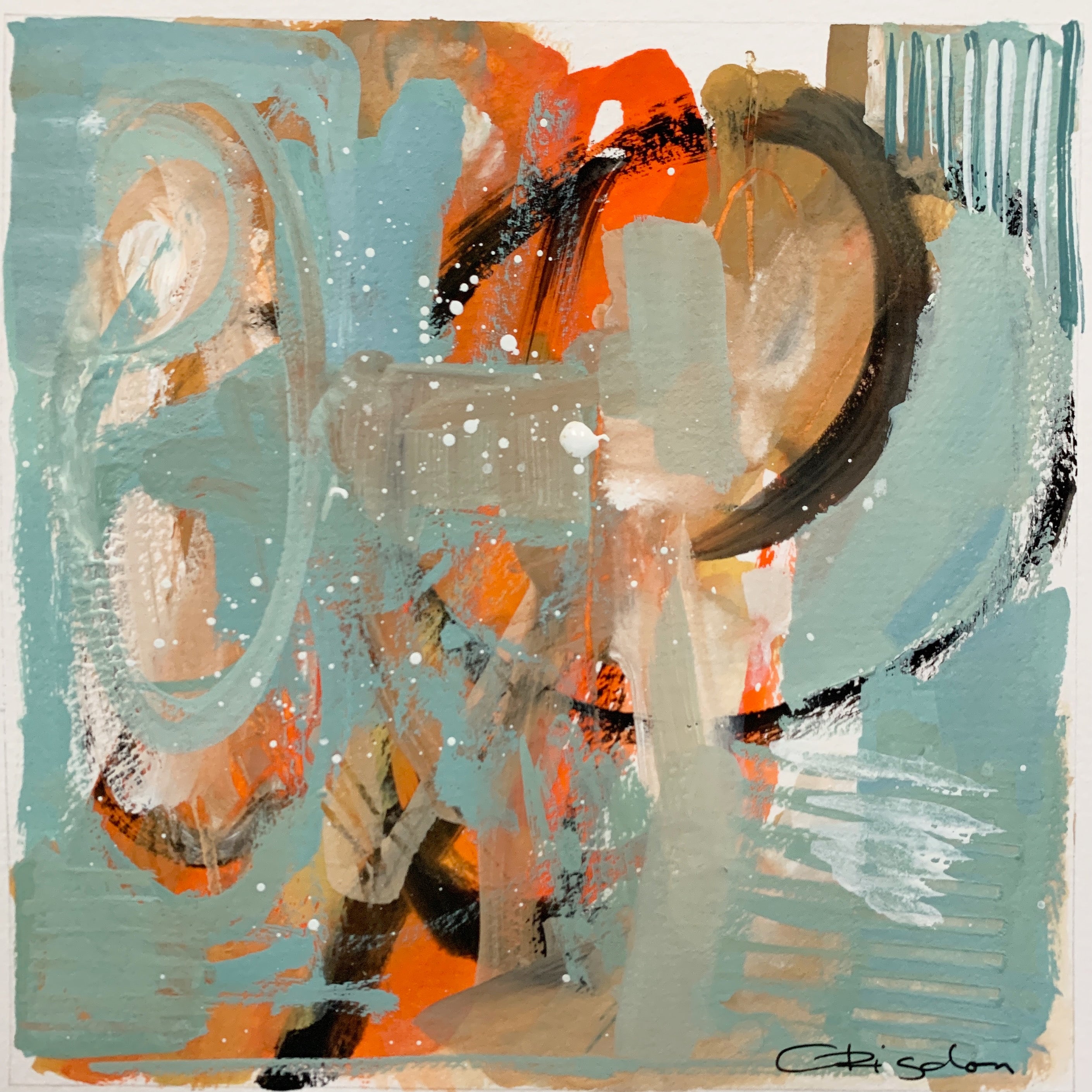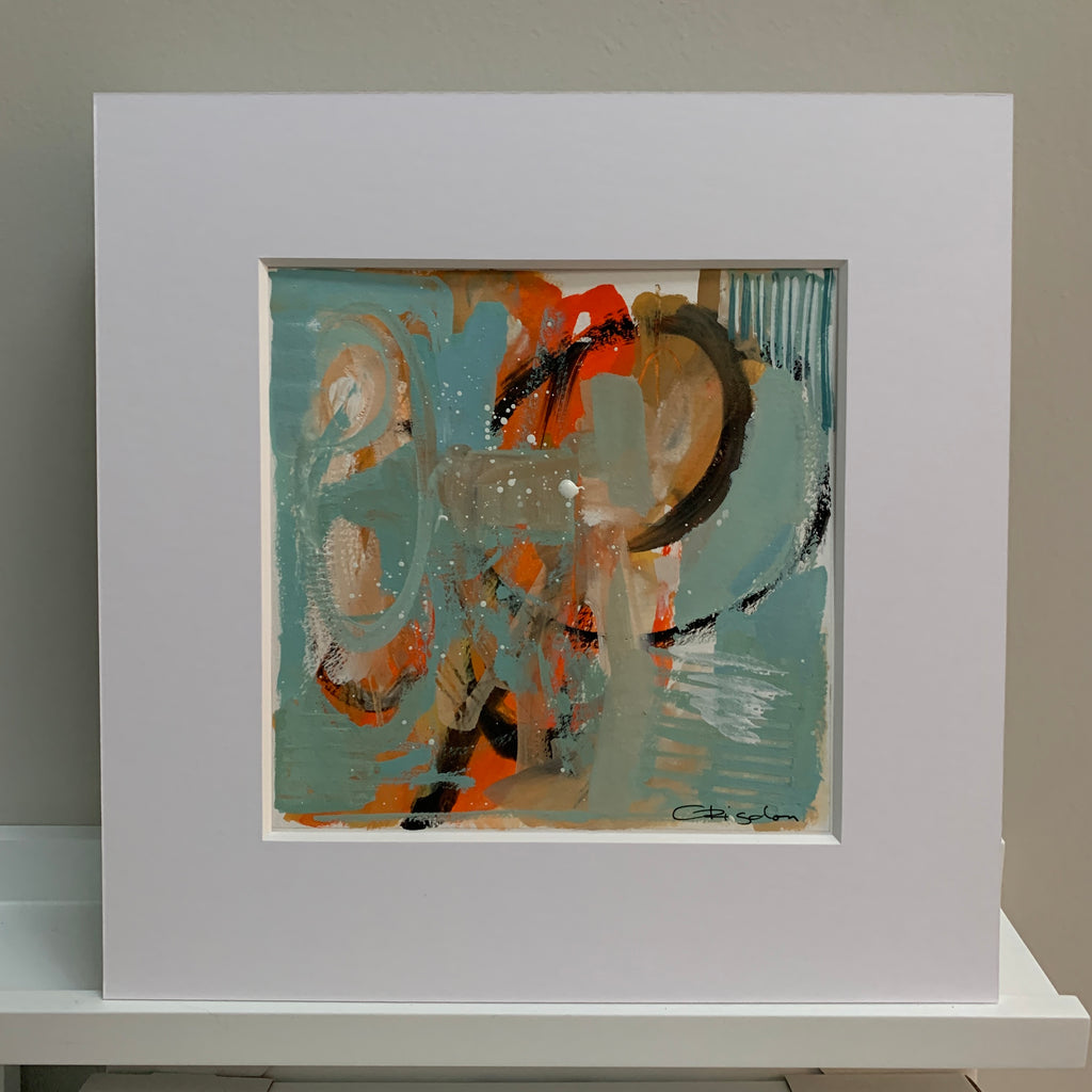 I find ultimate freedom in abstract expressionism and as such, I’m in search of the best way to convey who I am at the moment of creating. It is not to say it is a free-for-all; there is still structure within. I implement the same principles that realist painters employ with the absence of representation: composition, hierarchy, variety, juxtaposition are vital to a successful painting. But I do not limit myself to one medium or the other. I work in oil, acrylics and gouache and depending on what I’m exploring at the time I will choose one or more to express it. I also explore through a combination of paint and collage. It is through all of these various methods and mediums that I am able to share my fullest expression of self and my authenticity. My paintings ultimately are self portraits that are created from both past experiences and also future hopes and dreams. It is my goal to invoke a feeling for the viewer. When it does I have succeede